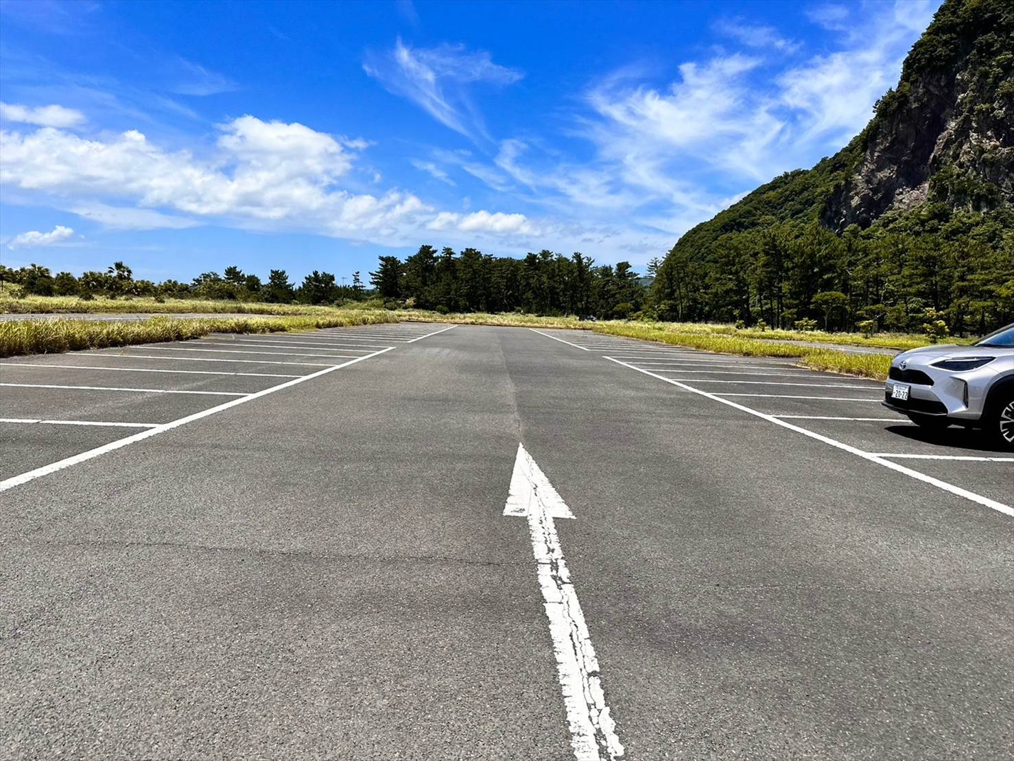 実際には知林ヶ島にほど近いところに、こんなに広い(そして空いている)駐車場がありました。ミスったあ…。