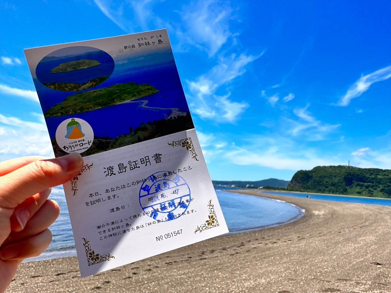 年に数ヶ月だけ干潮時のみ砂州が現れ、歩いて渡ることができる”ちりりんロード”が出現。