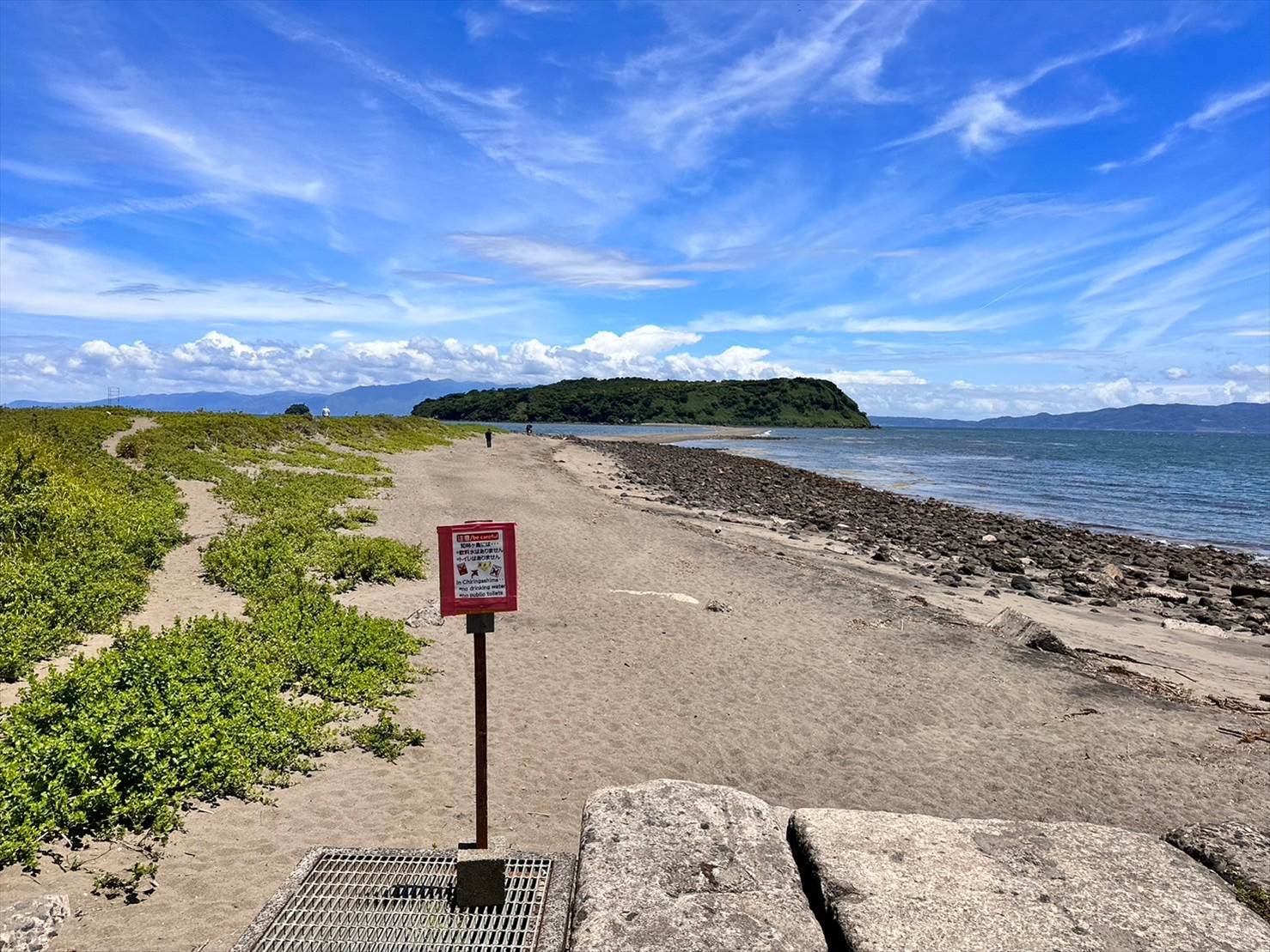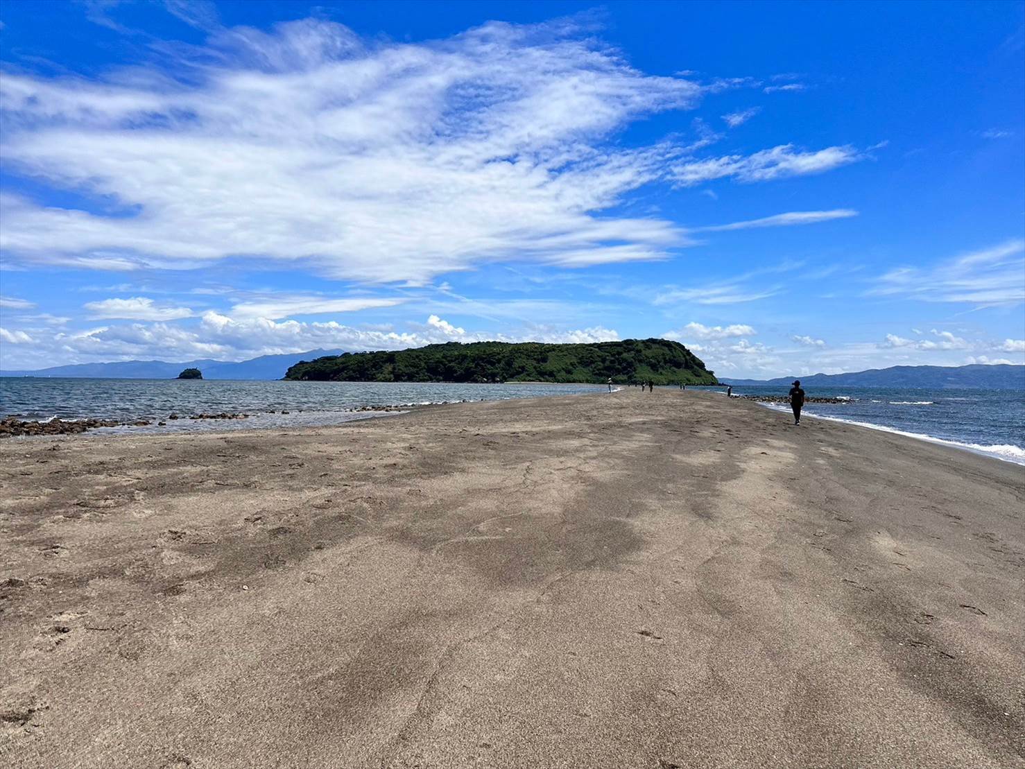 干潮時には砂州が現れ、大潮の際は干潮時間が長いため歩いて渡ることのできる神秘的な島です。