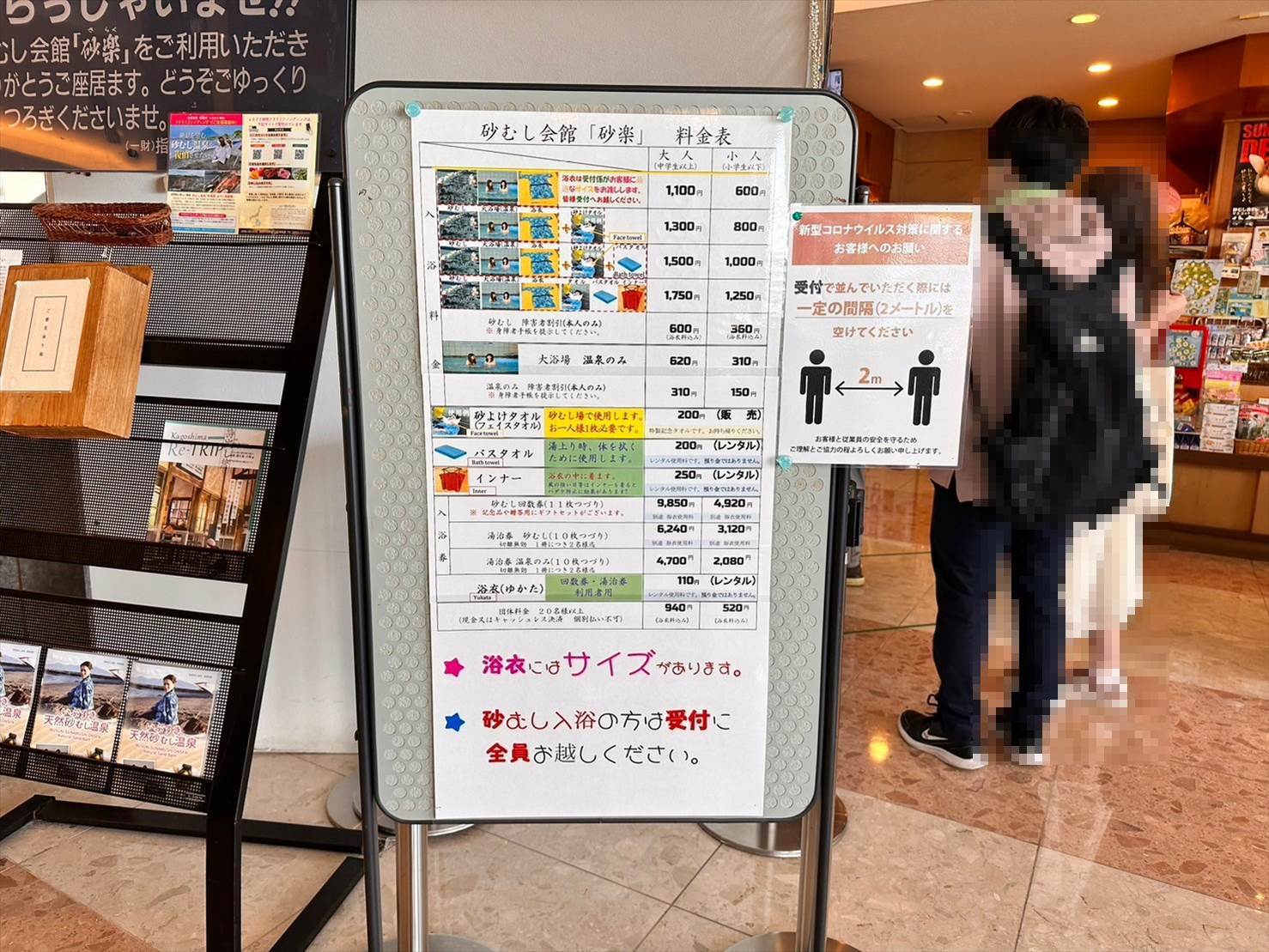 タオルの有無等で料金が細かく分けられていましたが、今回は砂むし温泉と大浴場の双方を利用でき、バスタオルもレンタルできるプランで入場。