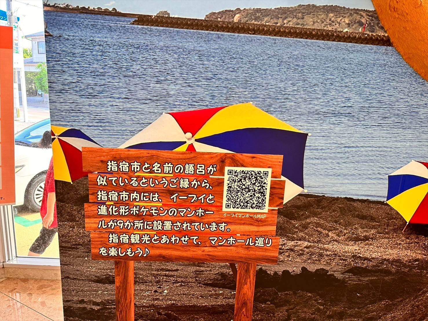 指宿市と名前の語呂が似ているという縁から、指宿市はイーブイとコラボしたマンホールがあるんだそう。へええ…、語呂が似ているのかは判断つきませんが、マンホール巡りは面白そう。笑