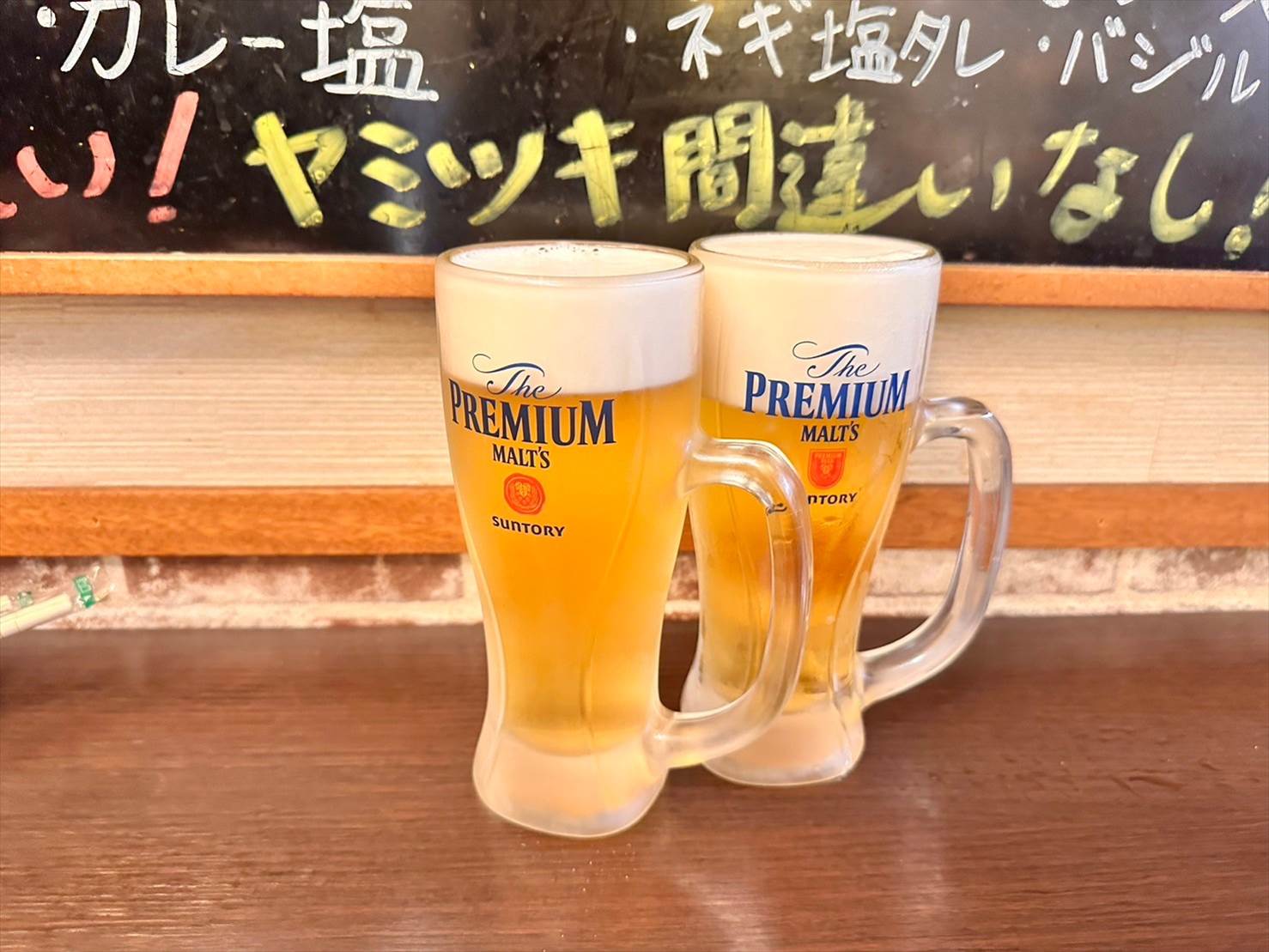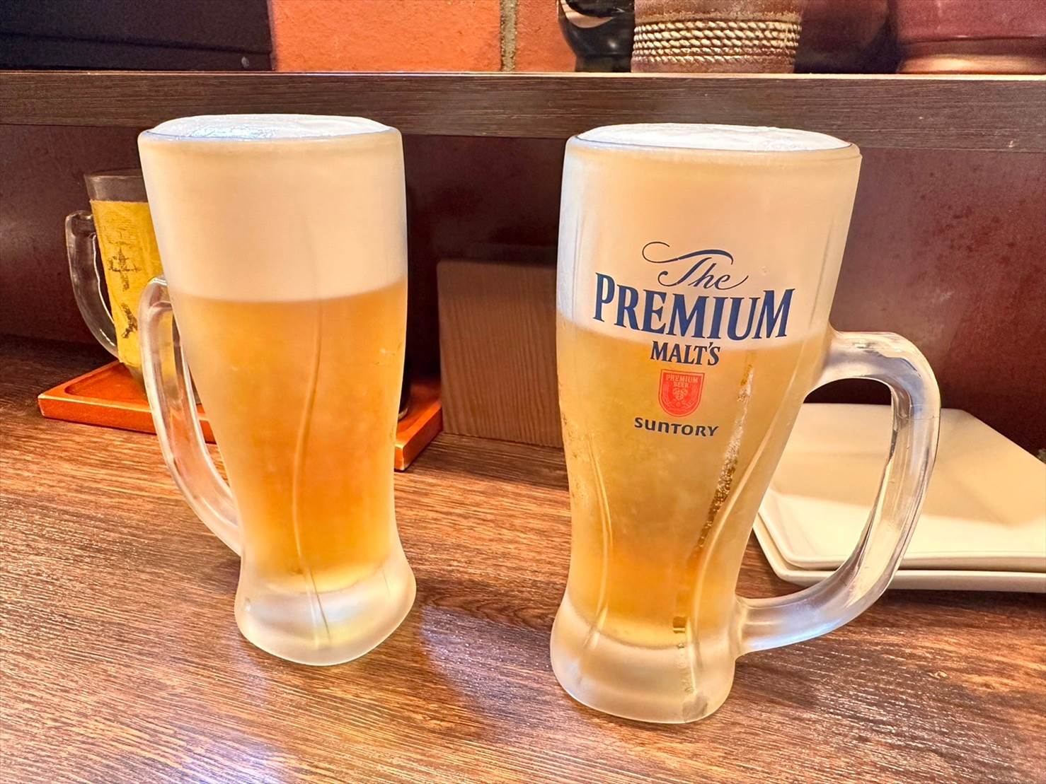 ▲早速飲み放題を注文し、プレモルで乾杯!!🍻