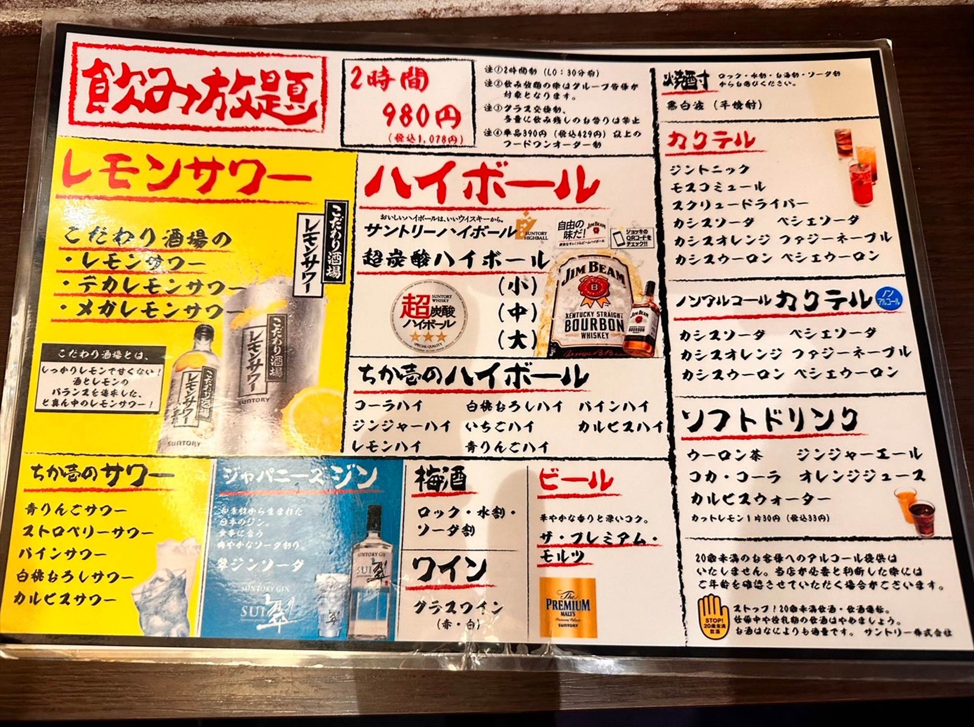 うわあ、本当に2時間980円(税抜き)って書いてあるよ…!しかもちゃんとプレモルあるよ…!