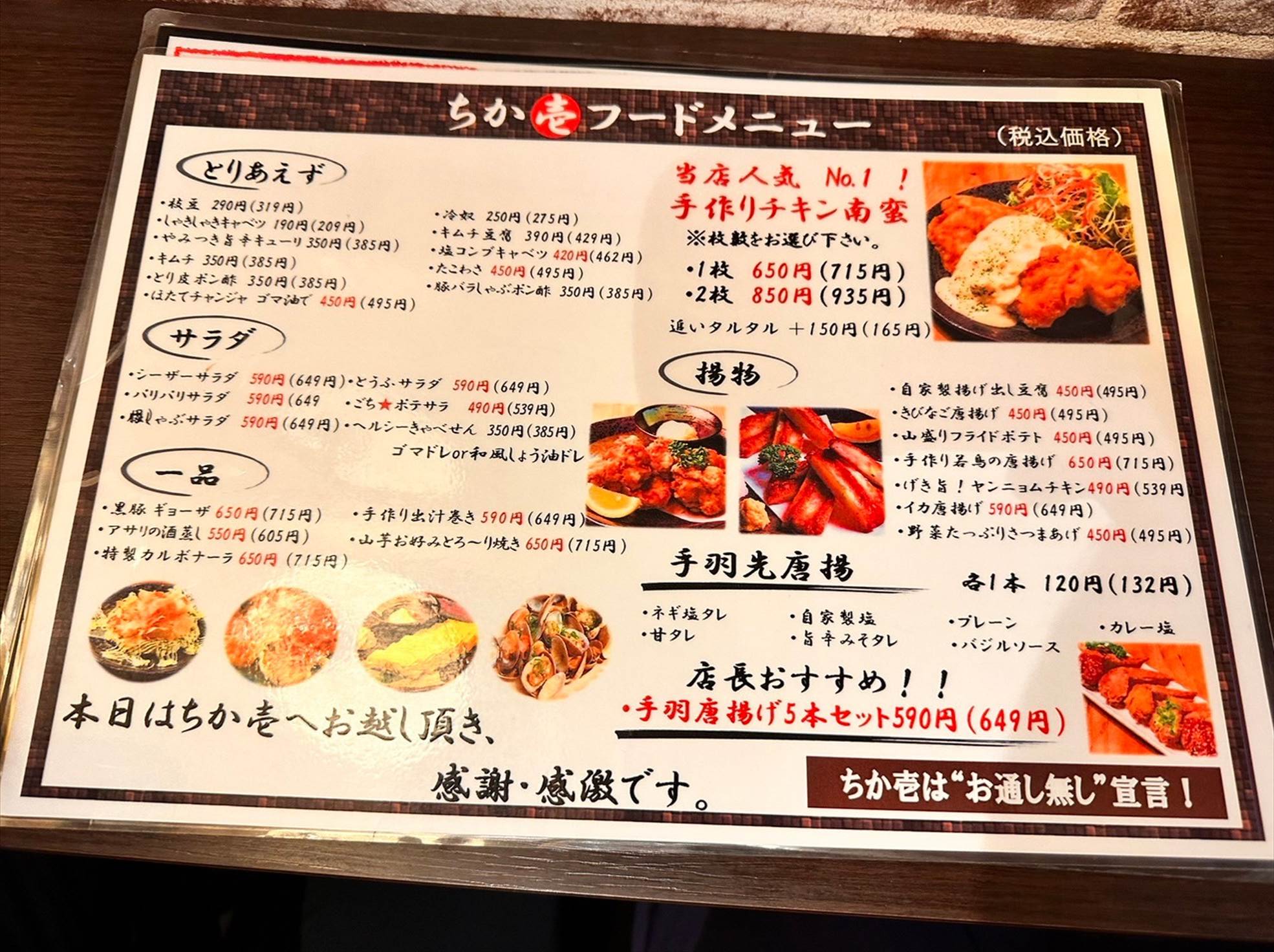 そこで2日目/3日目の夜に訪れたお店が「ちか壱」。