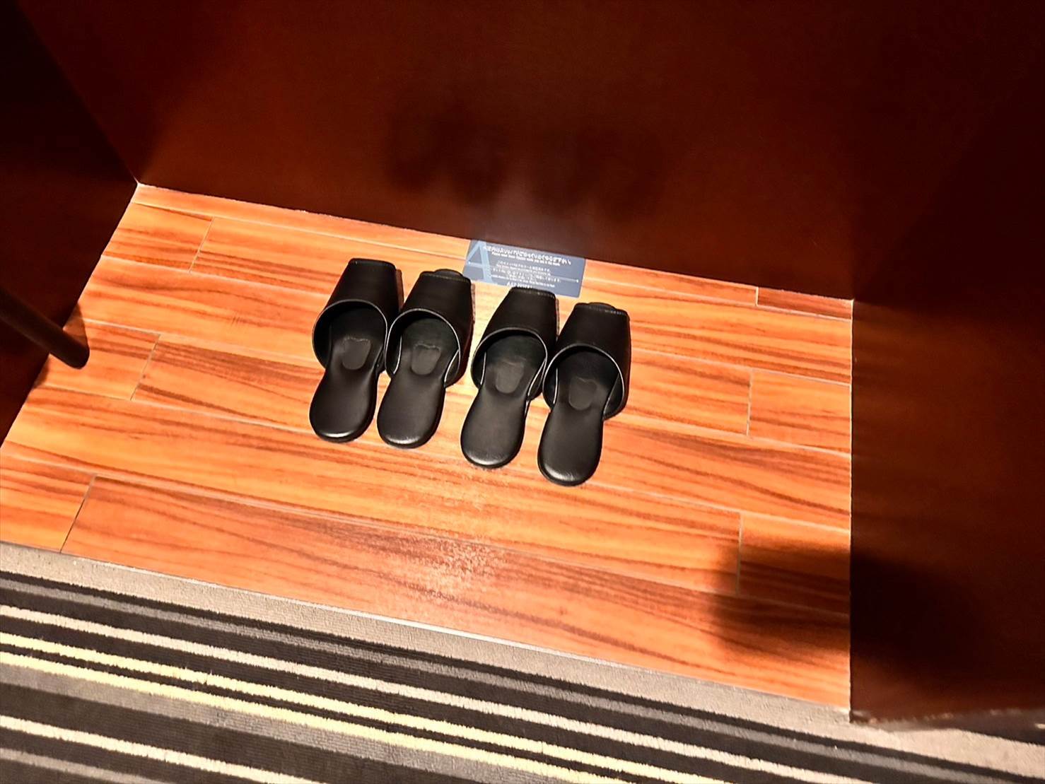 ▲客室用のスリッパは繰り返し使用するタイプのものが備え付けてありました。