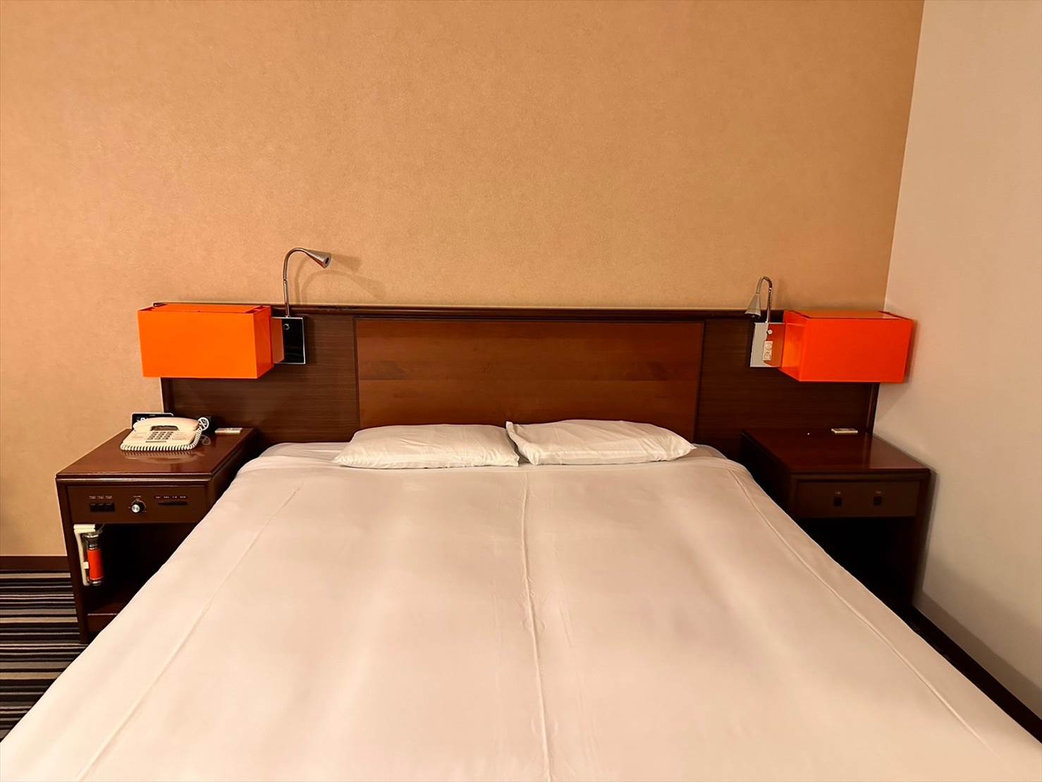 枕元にサイドテーブルが用意され、それぞれコンセントがあるのがGOOD。