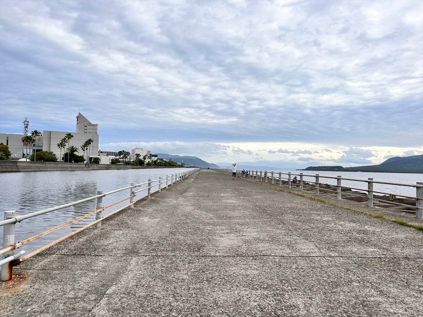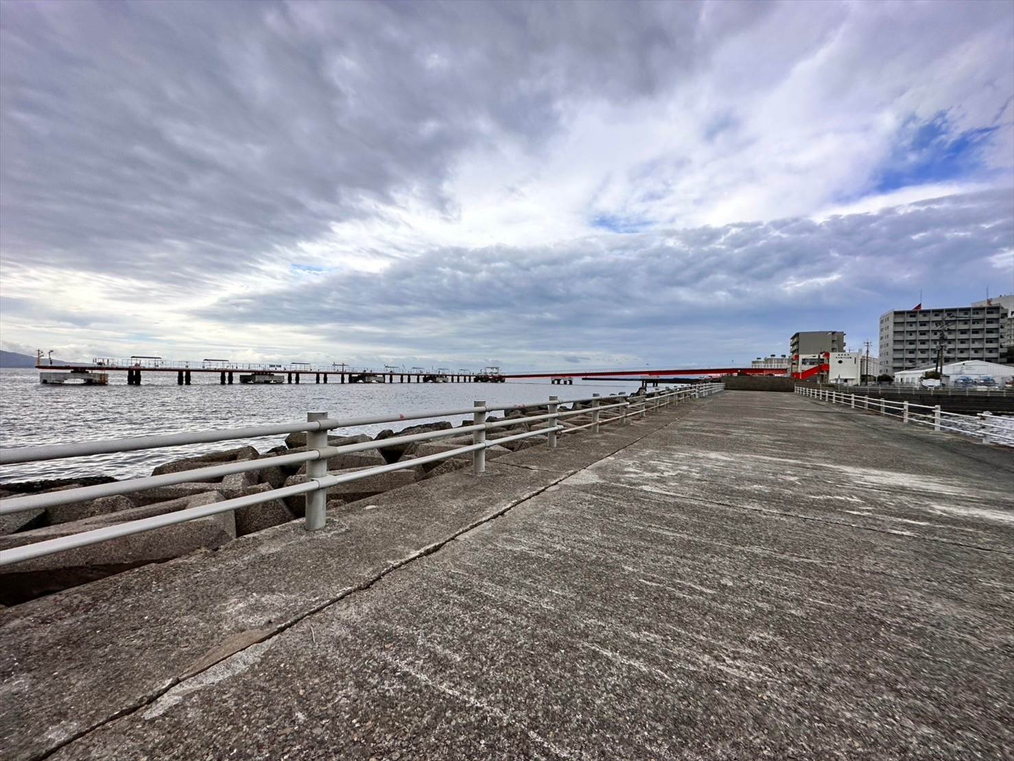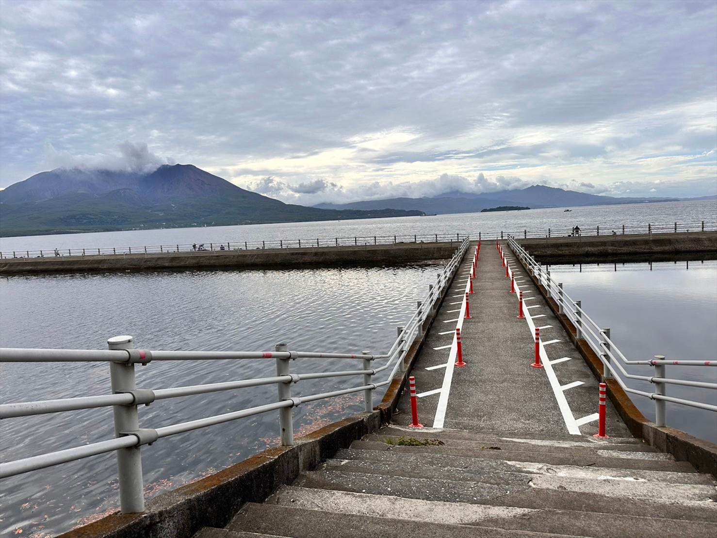 - ホテルから少し歩くと、桜島を近くに感じられる桟橋があってGOOD