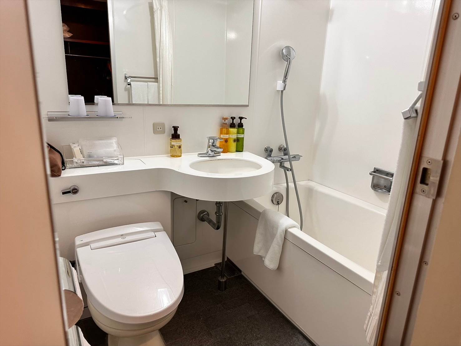 ユニットバスタイプで、コンパクトでありつつ清潔感ある作りとなっていました。