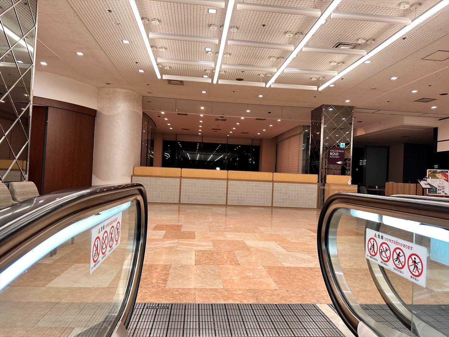 ▲フロントは2階にあるので、建物に入った後エスカレーターで移動します。