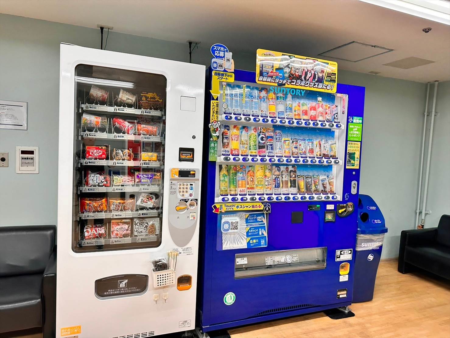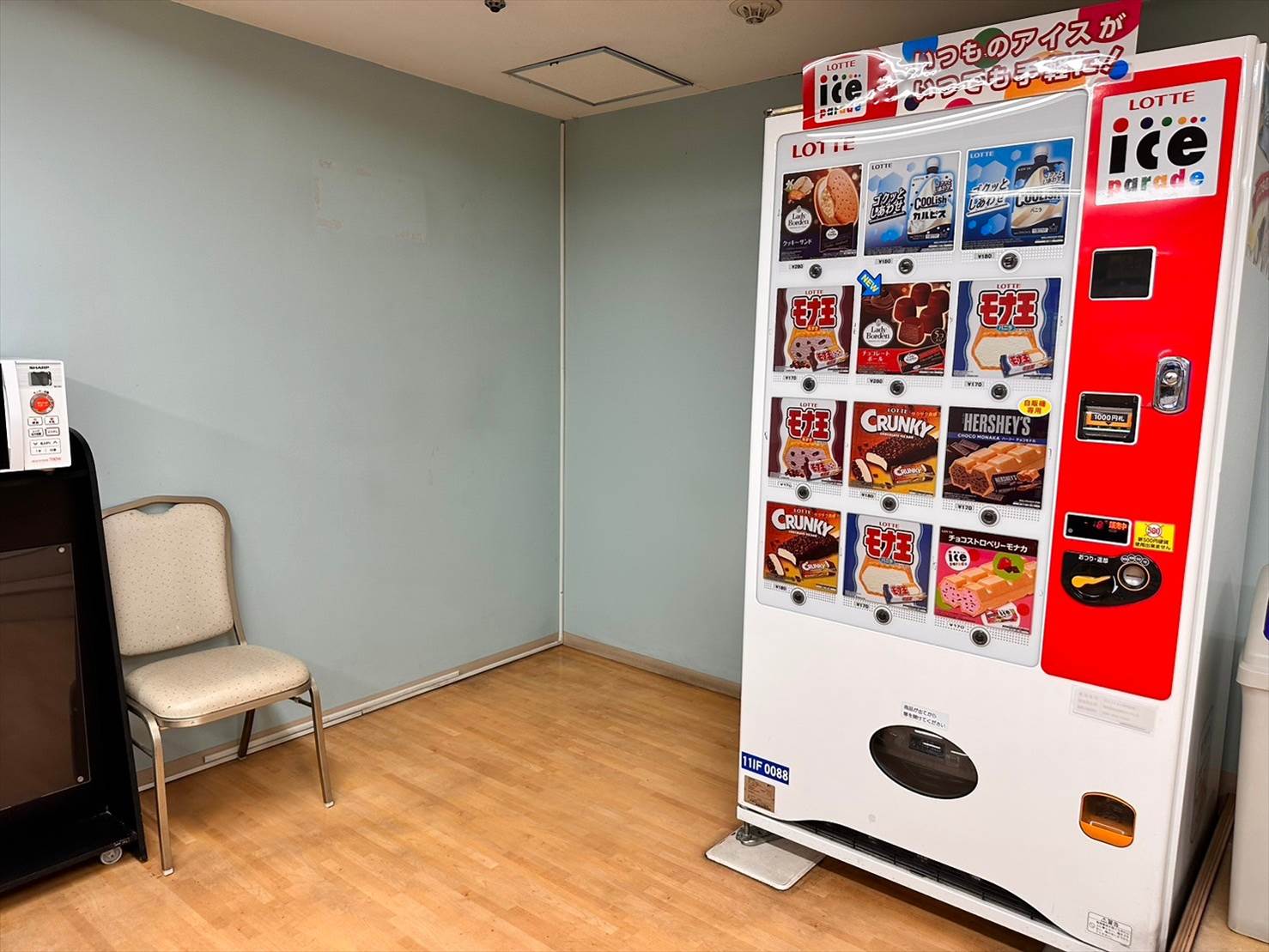 - 自動販売機が充実。アイスや軽食、お菓子がある。