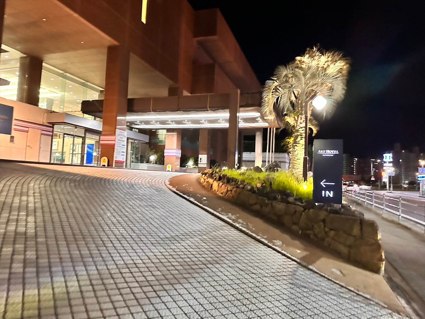 ▲夜。居酒屋「ちか壱」で心ゆくまで飲み食いした後、バスに揺られて30分ほどで本日の宿「アートホテル鹿児島」に到着しました!