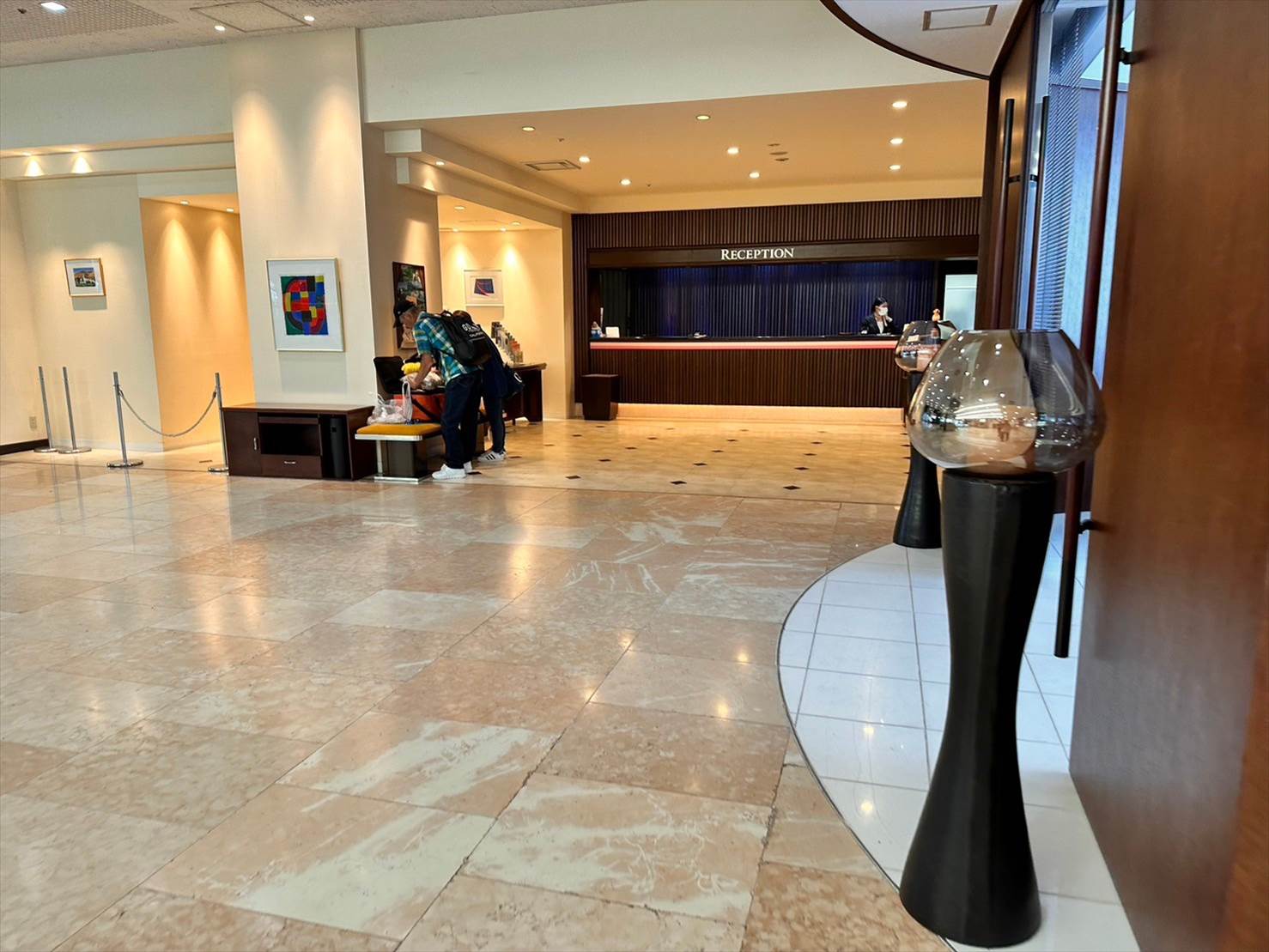 ▲こちらがフロントの様子。リゾートホテルのような雰囲気があっていい感じです。