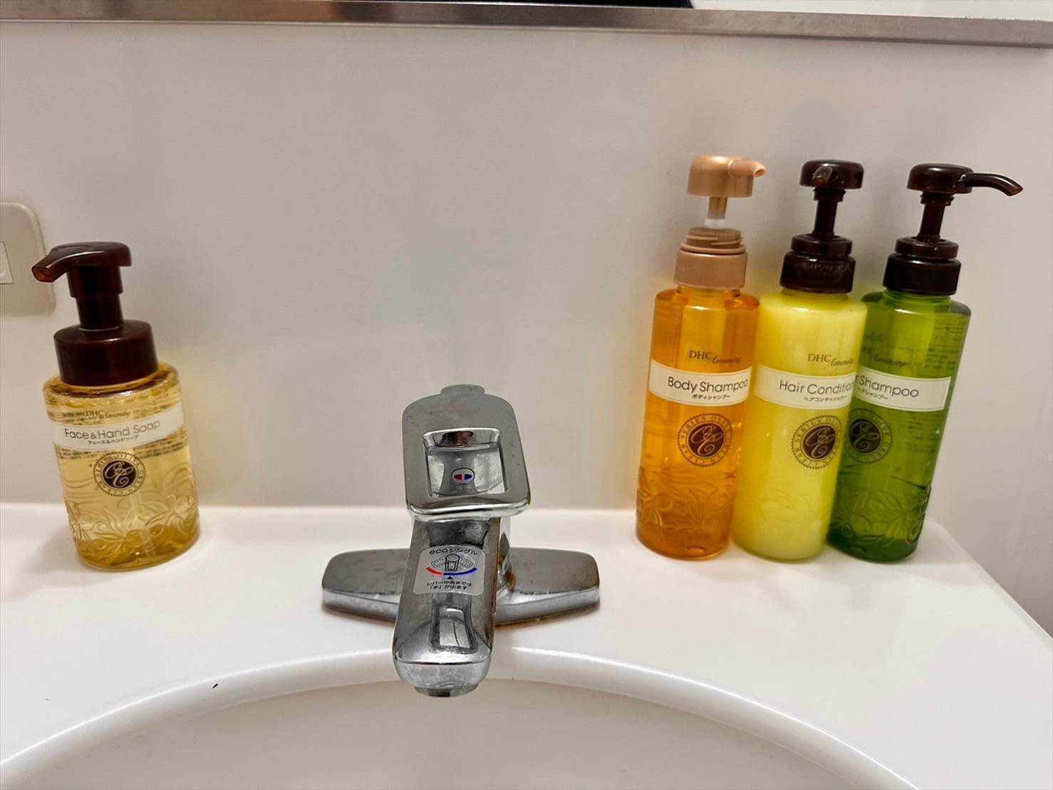▲フェイス&ハンドソープに、ボディーソープ・ヘアコンディショナー・ヘアシャンプーが完備。