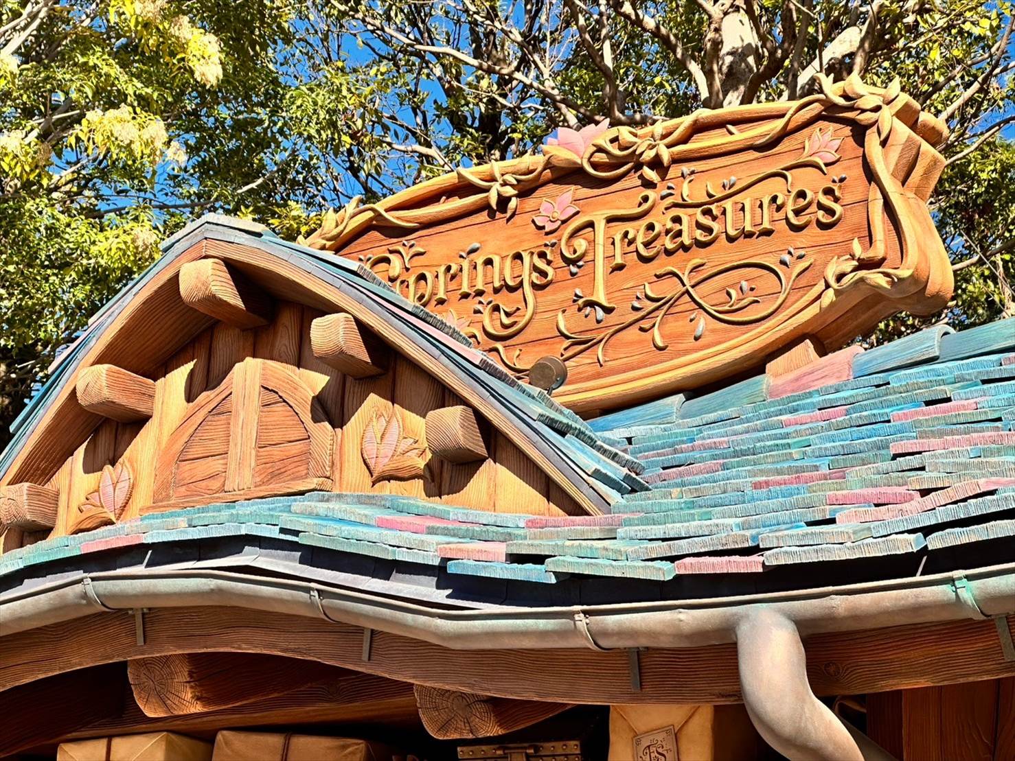 後にお話する、エリア内のショップ「ファンタジースプリングス・ギフト」と対になって、エリア内では”お土産・プレゼント”、エリア外では”宝物”と言い表されているのが良いですね。