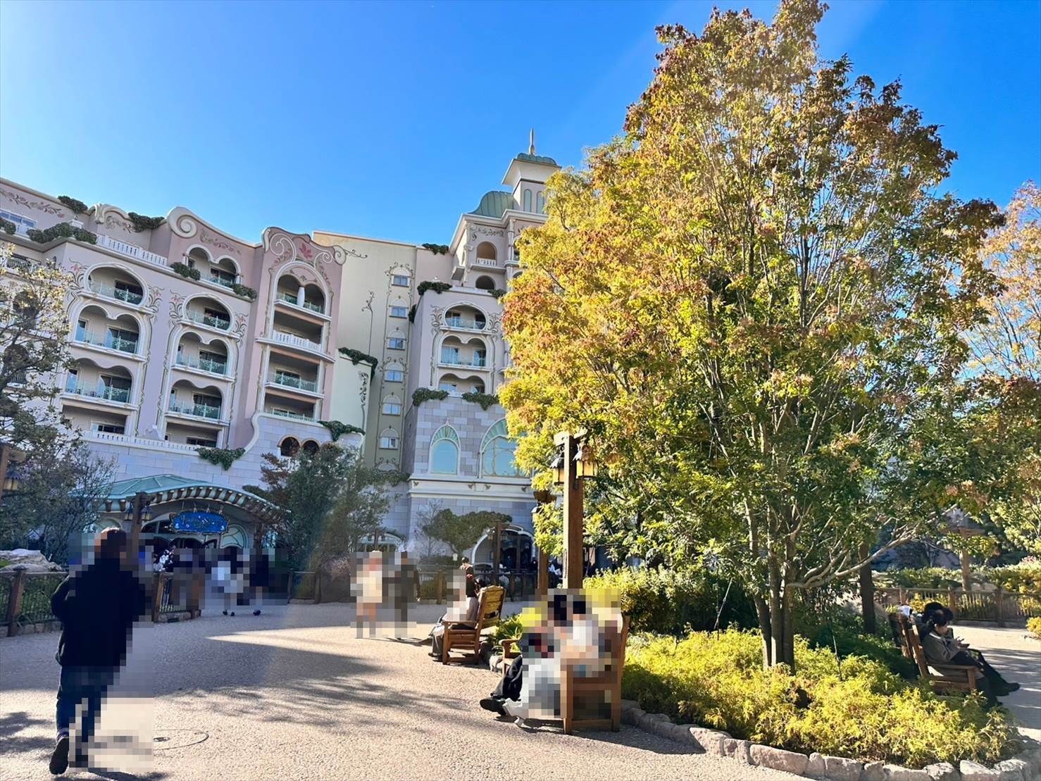 - ファンタジースプリングスホテル周辺は広々としている一方で、ベンチの数が少ないため、ゆっくり座って過ごせるスペースが限られている