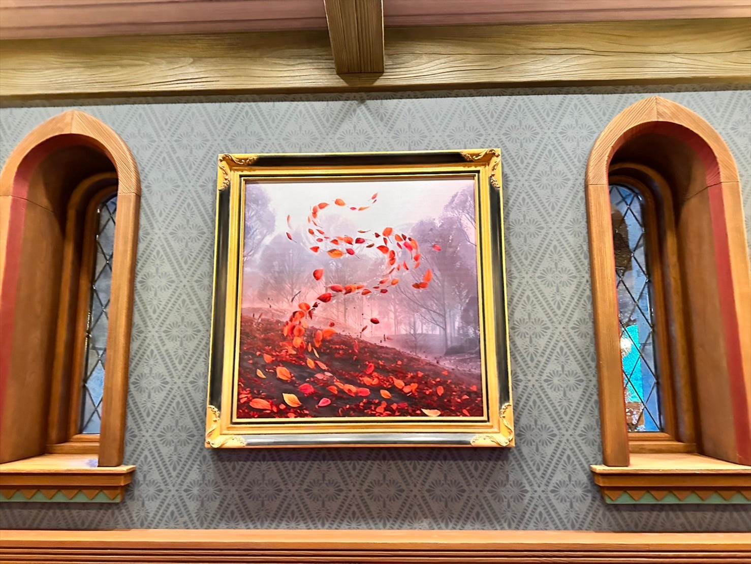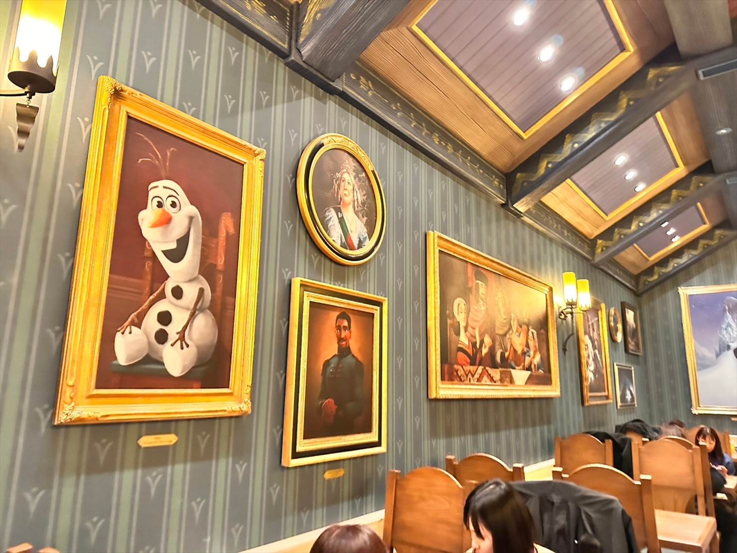 ▲アトラクションは基本「アナと雪の女王」の映画の世界ですが、アレンデールロイヤルバンケット内の絵画をよく見ると、「アナと雪の女王2」の世界も描かれており感激です。