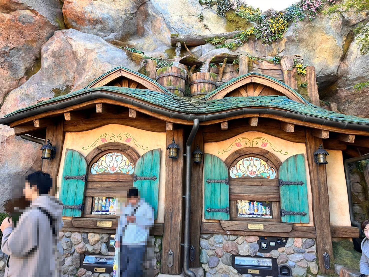 ▲自動販売機の上部にファンタジースプリングスの泉が流れ込んでいました。