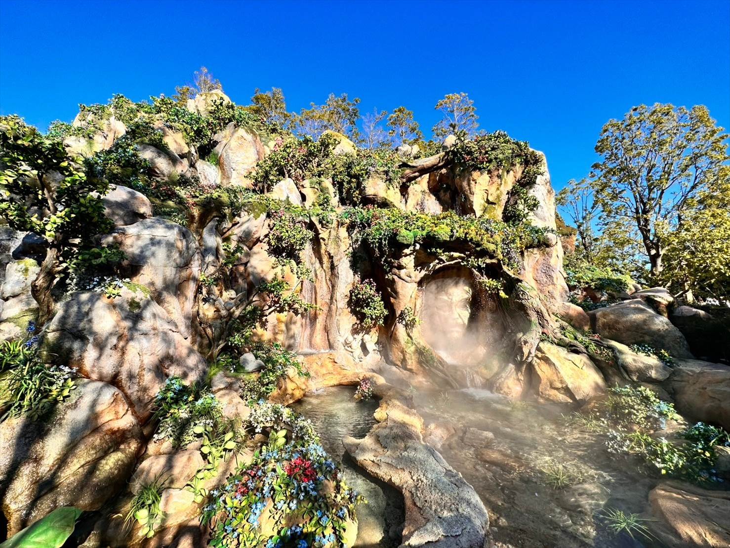▲ファンタジースプリングスエリア入口の左側には、ピーターパンのロックワークが。