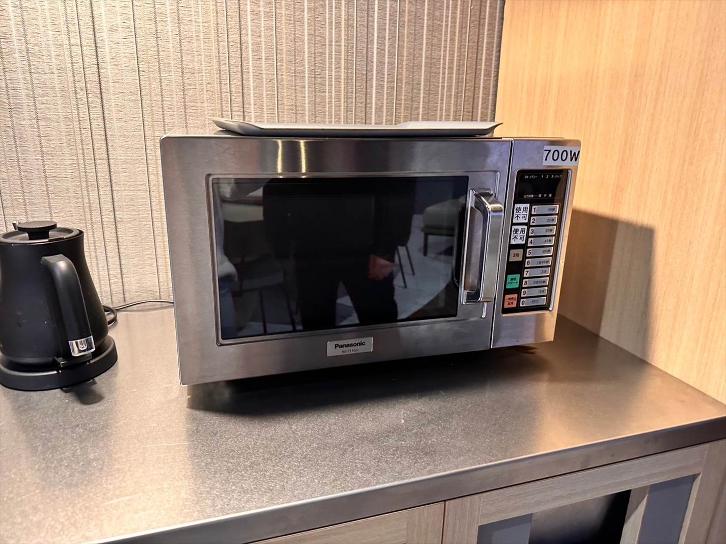 ▲ちゃんと700wの業務用の電子レンジも用意されていました。