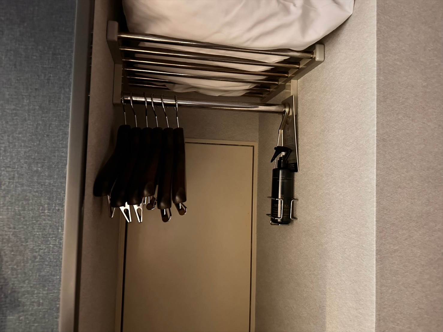 ▲コンパクトなスペースですが、ハンガーは十分な量が用意されていました。