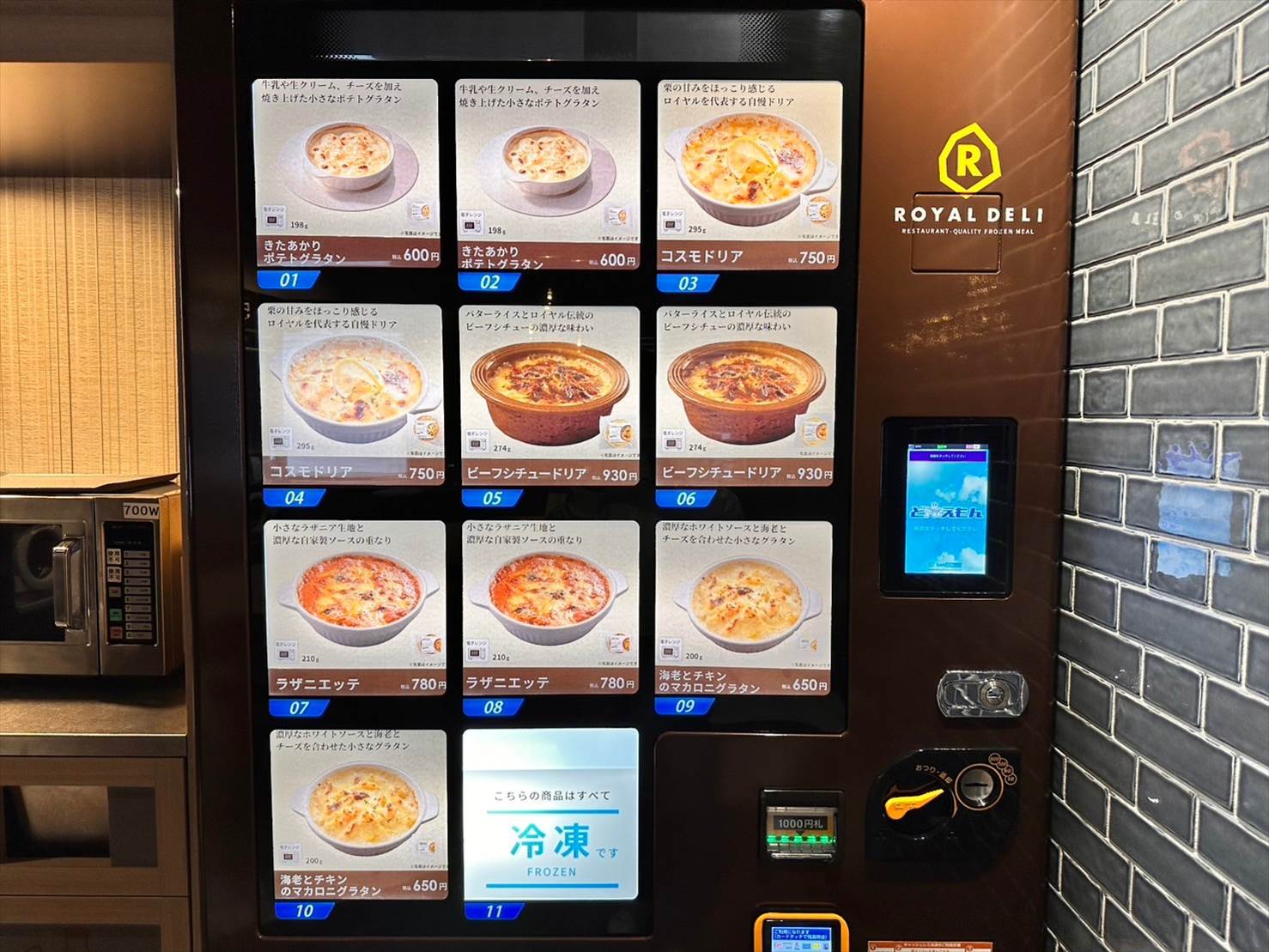 ▲その隣には、なんと冷凍食品の自動販売機がありました。