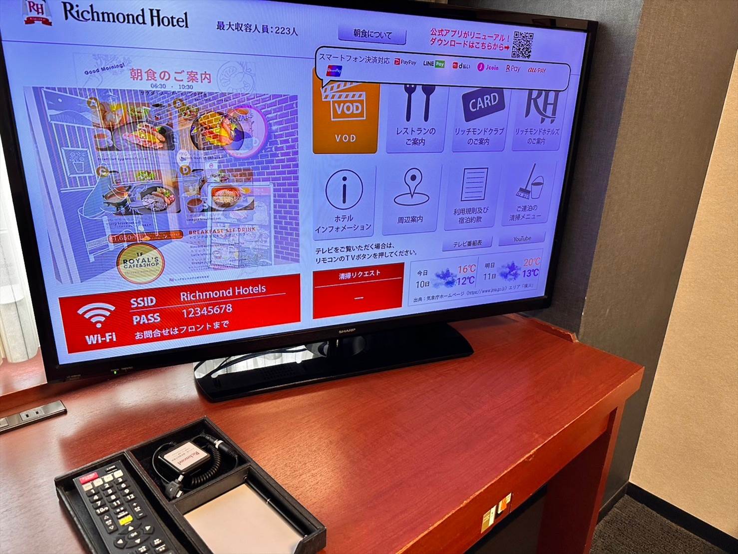QRコードをスマホで読み取って案内を表示するホテルも増えてきていますが、個人的にはパッと見たときに諸々分かりやすいこちらのTVタイプのほうが好みです☺️