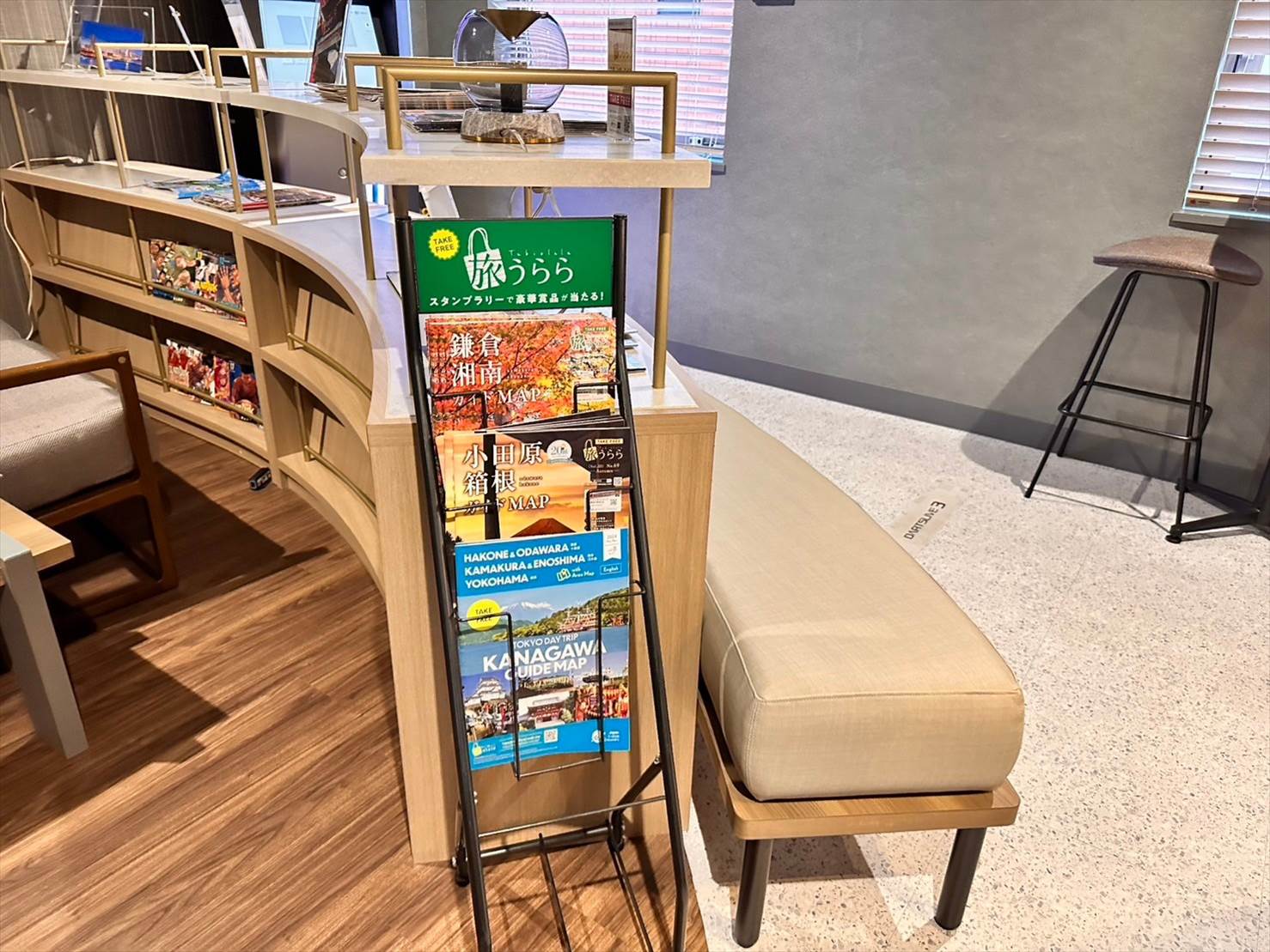 ▲ランドリールームの中心には神奈川県内の旅行雑誌等が用意されていました。