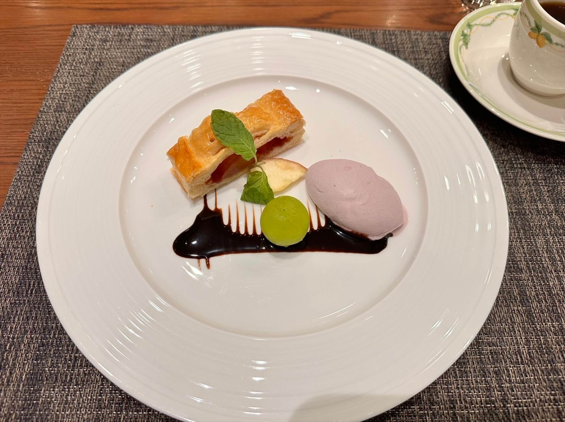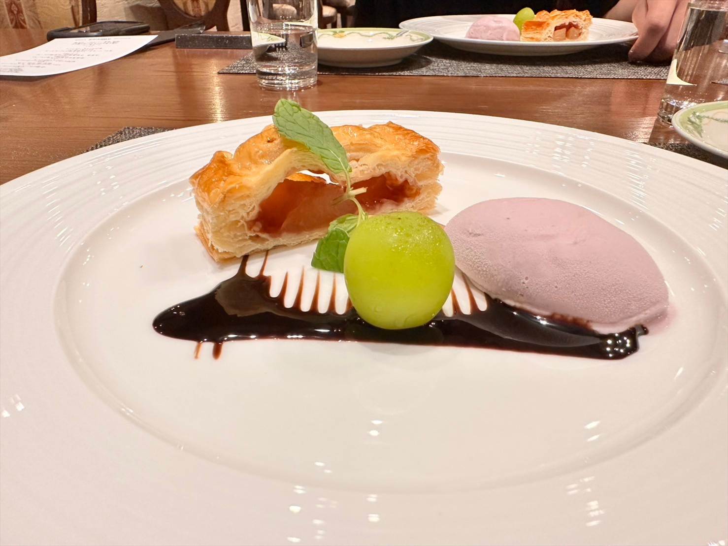 ▲そして最後8品目が、「アップルパイ 2種の芋のアイスクリームを添えて」。