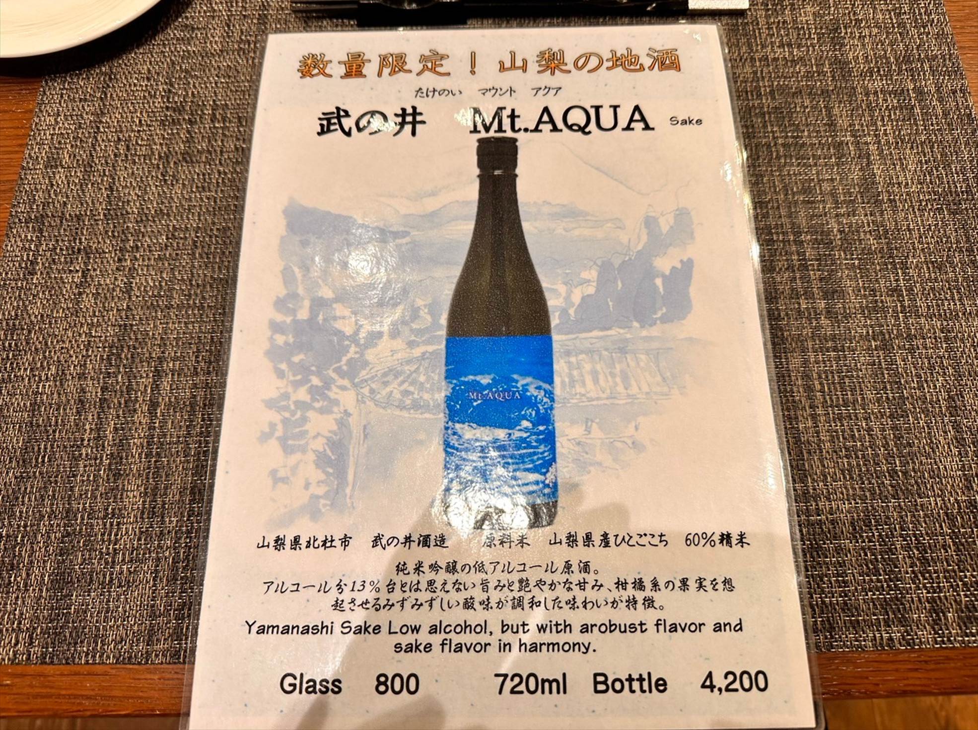 ▲その他、おすすめメニューとして山梨の日本酒が用意されていました。