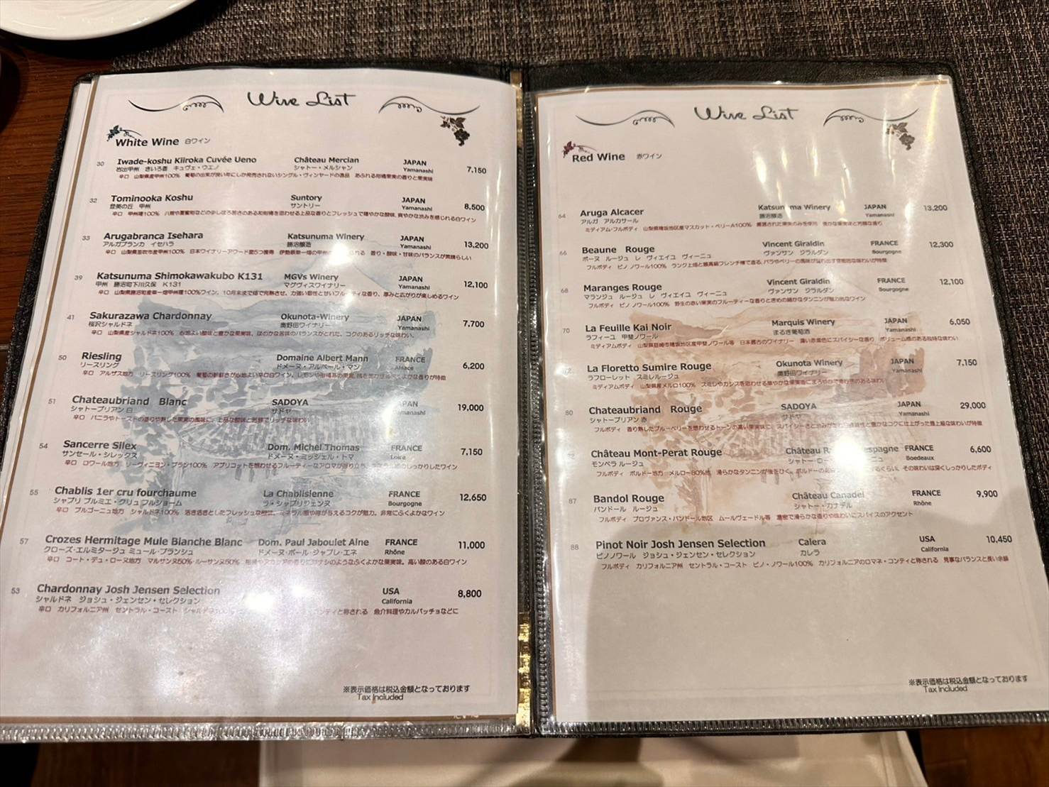 ボトルはフランス、山梨以外にもアメリカや日本の他の地域のワインも多数用意されていました。