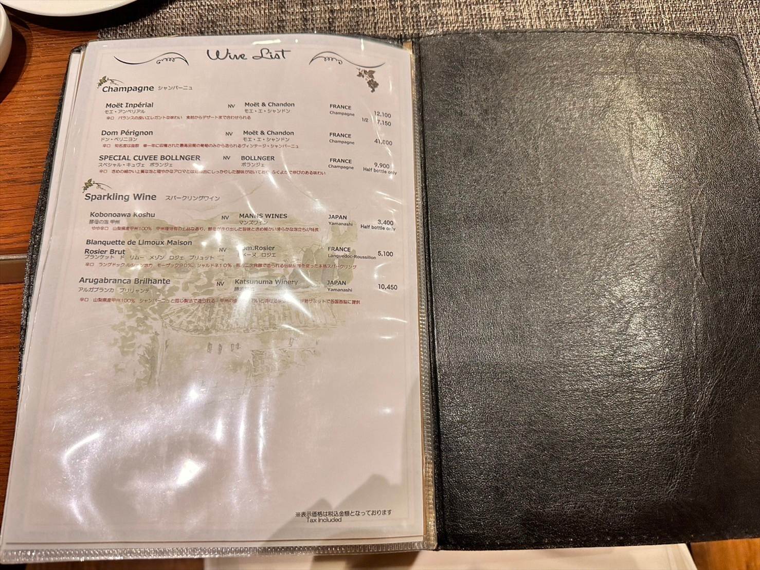 ▲最後がスパークリングワインとシャンパンのメニュー。