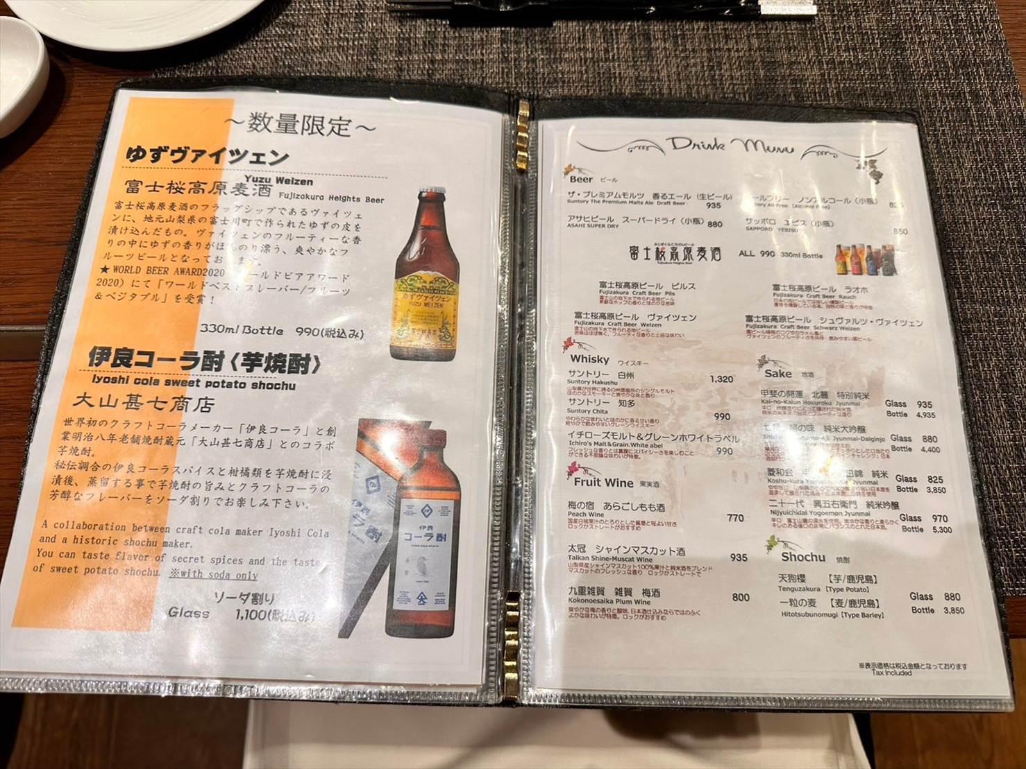 ラビスタ富士河口湖のディナーコース・ドリンクメニュー
