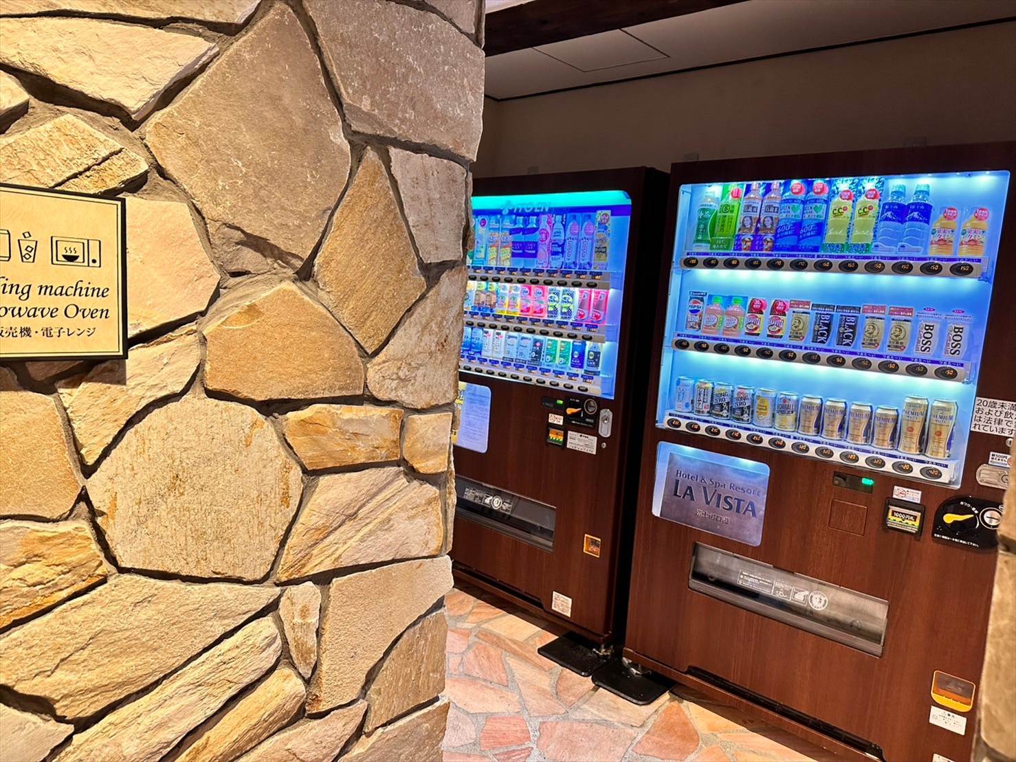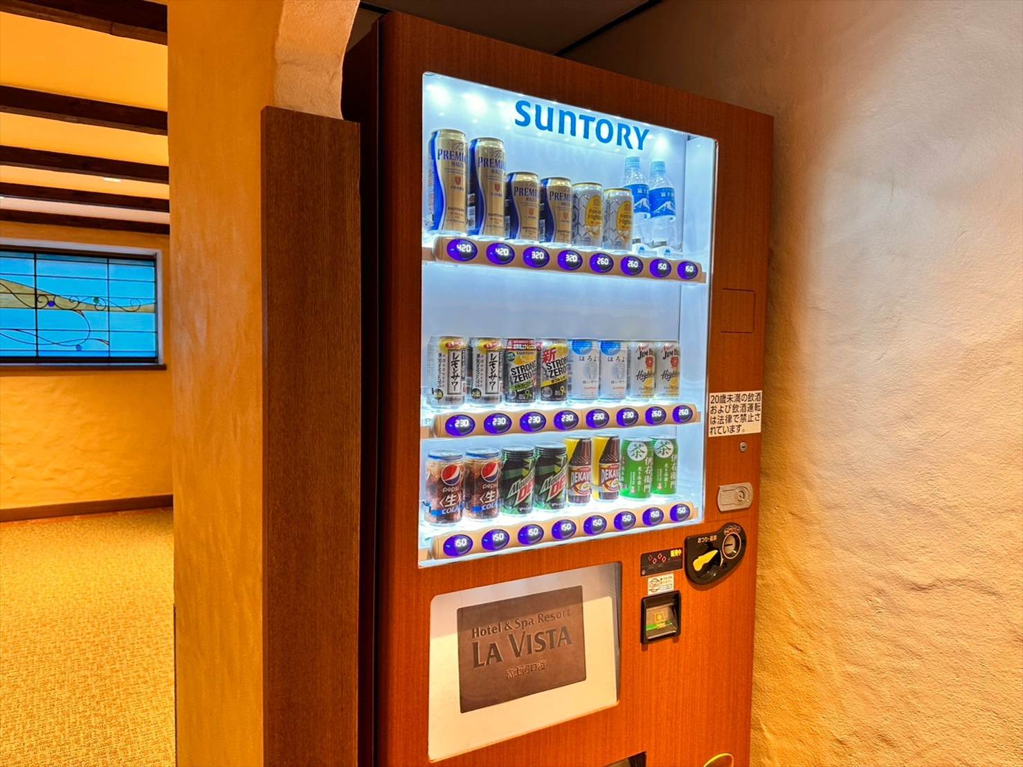 まずはこちら、自動販売機。ソフトドリンク・アルコール飲料が販売されています。