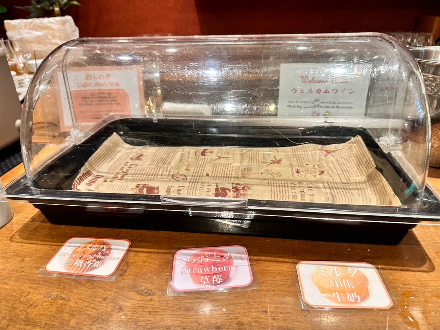 ▲そして、お酒好きの私たちが一番嬉しかったのがこちらのウェルカムワインサービス!