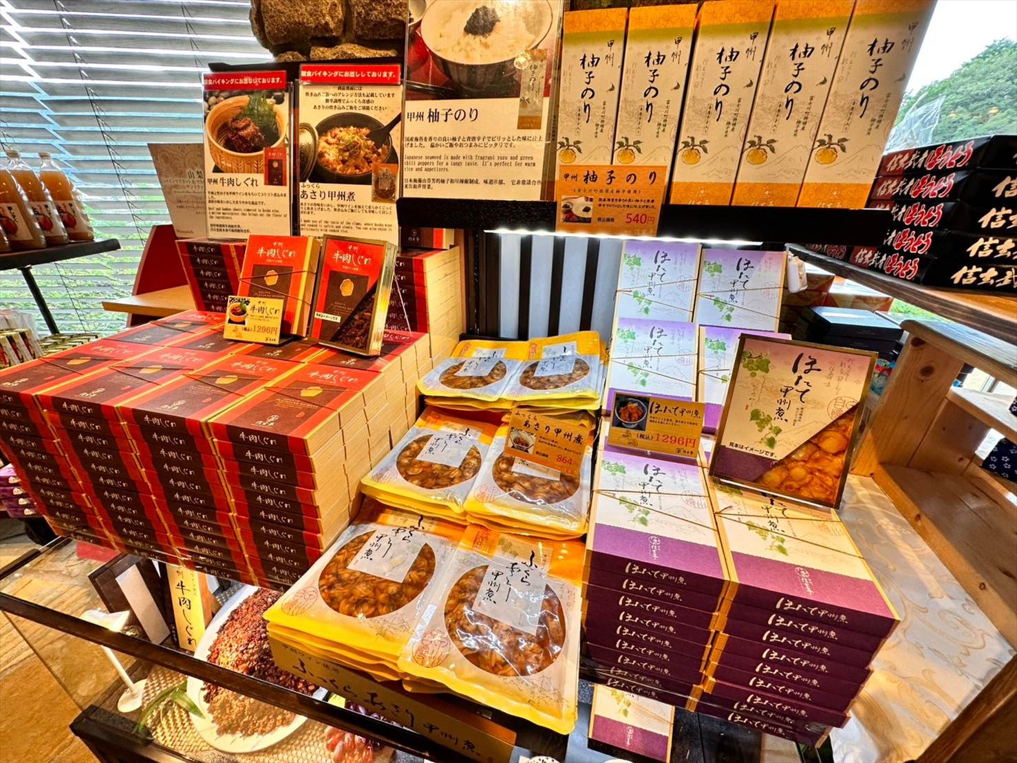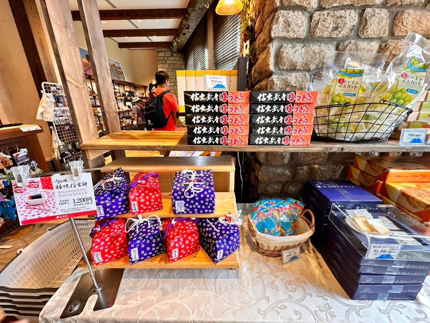 ▲山梨といえば!のお土産、桔梗信玄餅やほうとうもこちらで手に入りますよ!