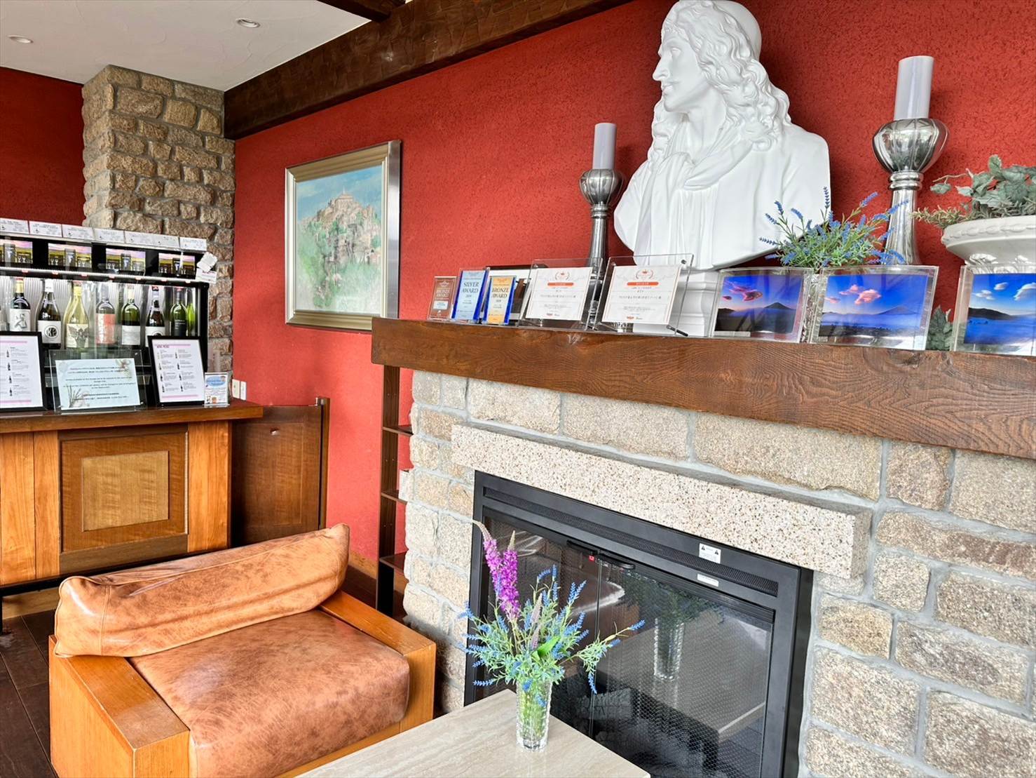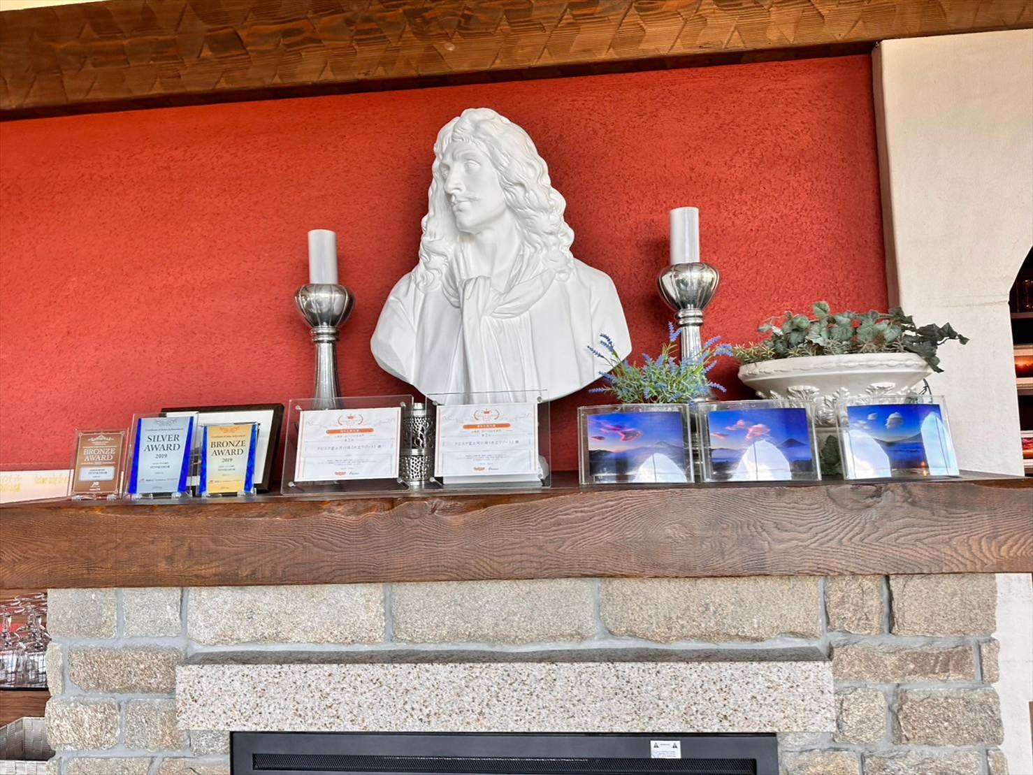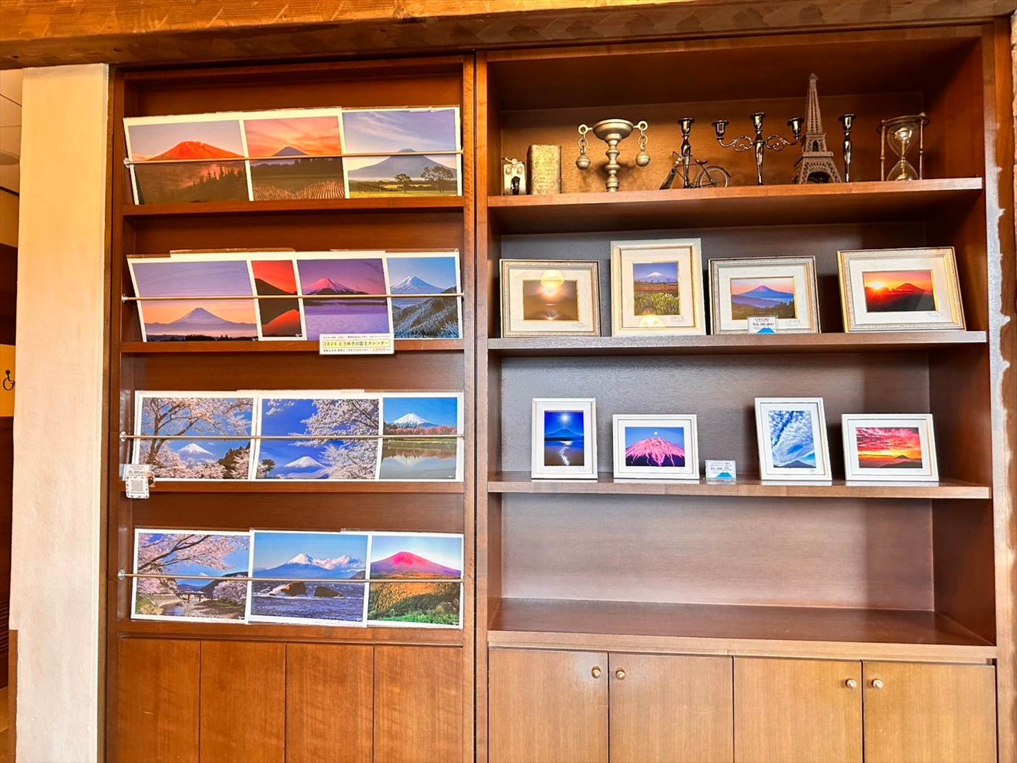 ▲暖炉の上にも、しっかり富士山の絶景を切り取った写真たちが並んでいました。