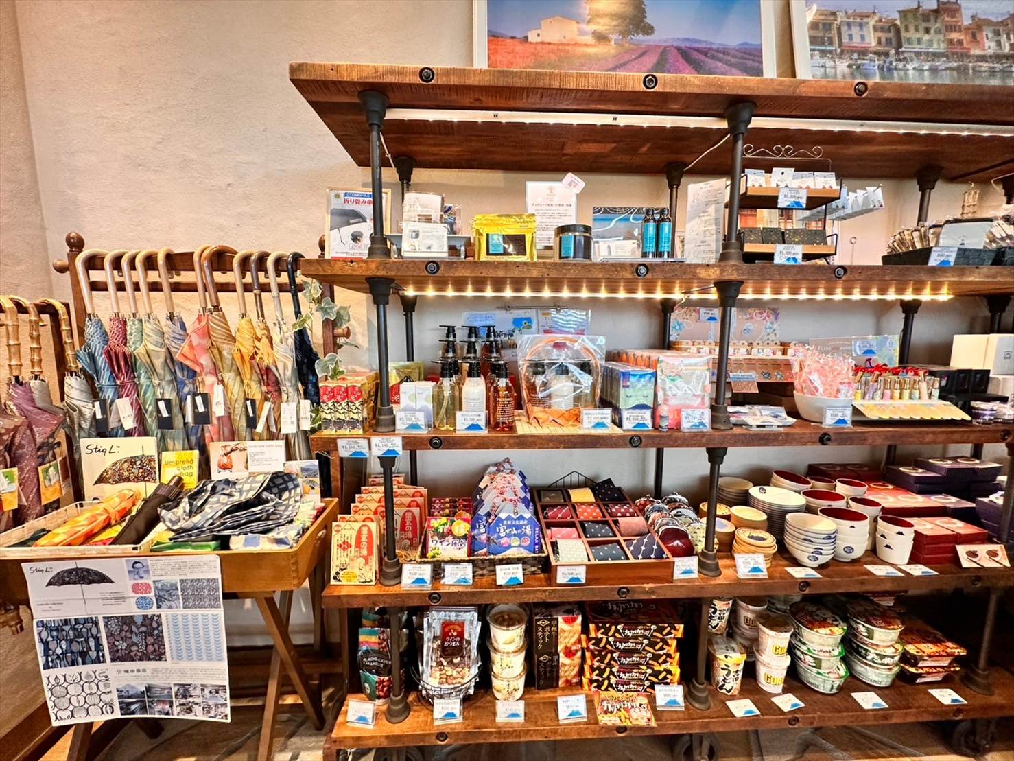 ▲お土産の他に、滞在に便利な傘や、小腹が空いたときに嬉しいカップヌードル類、お風呂に用意されていたシャンプー等のアメニティも販売されていました。
