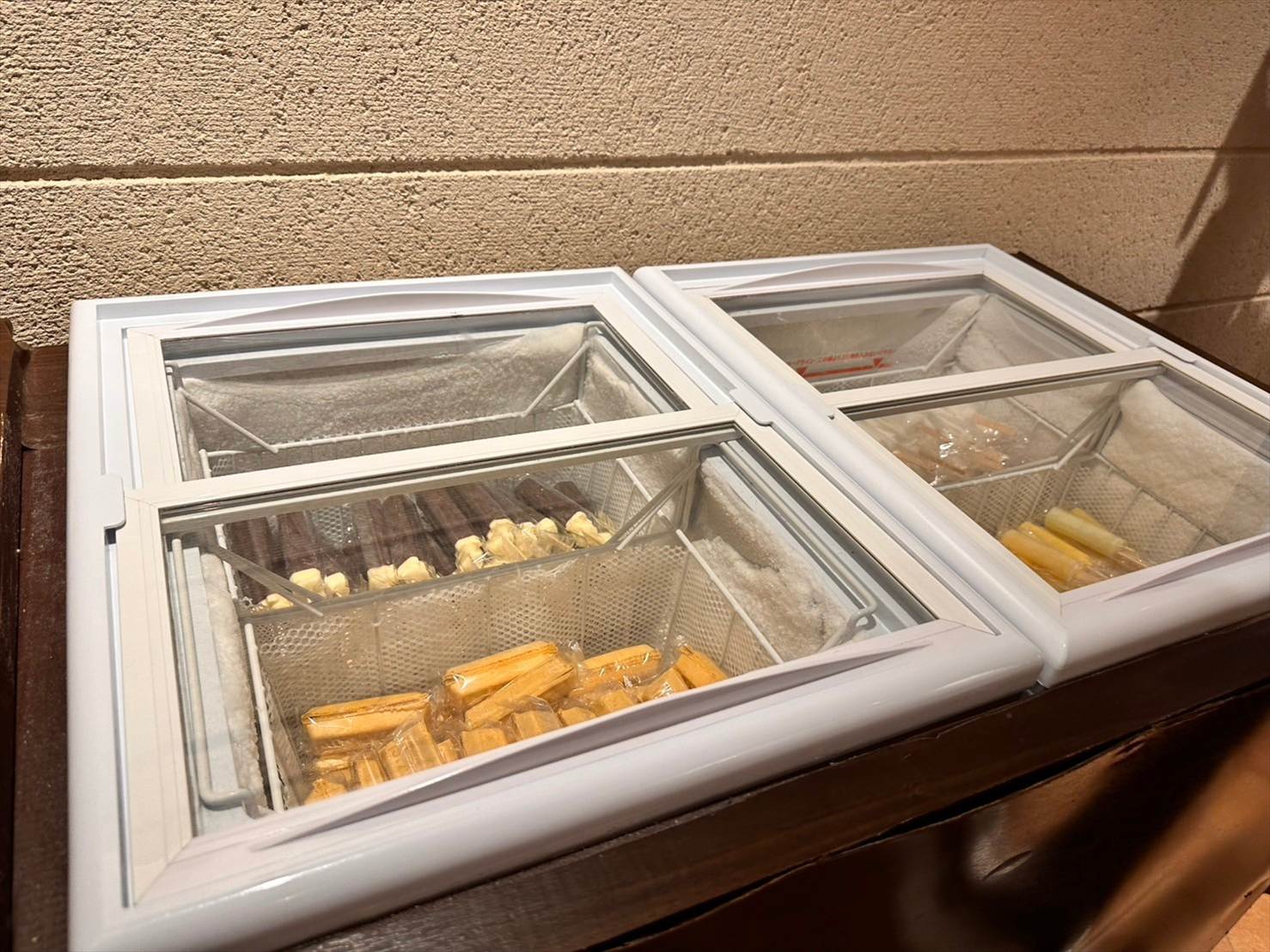 アイスの種類も、シンプルな果実バーにチョコアイス、モナカなど種類豊富。
