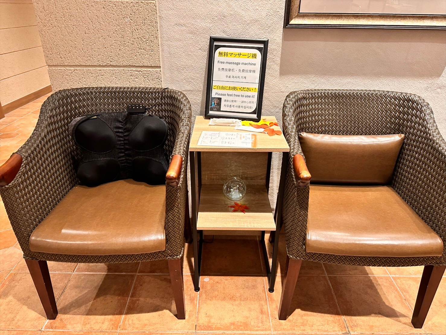 ▲他にも、湯上がりスペースには無料のマッサージ機が用意されていました。