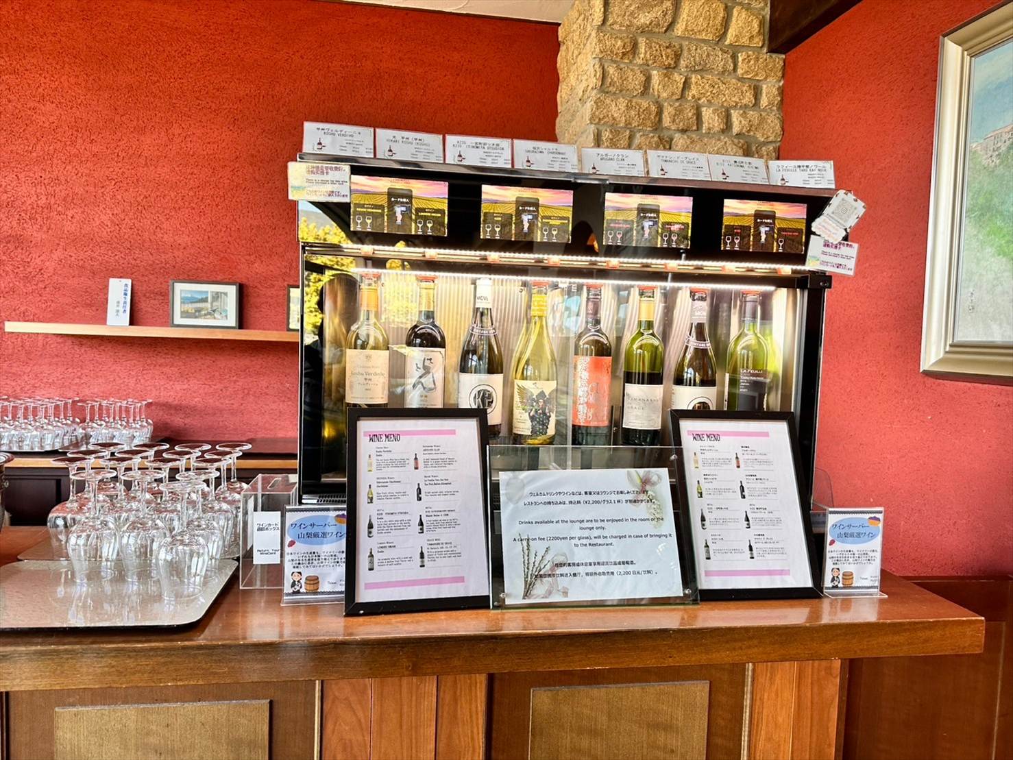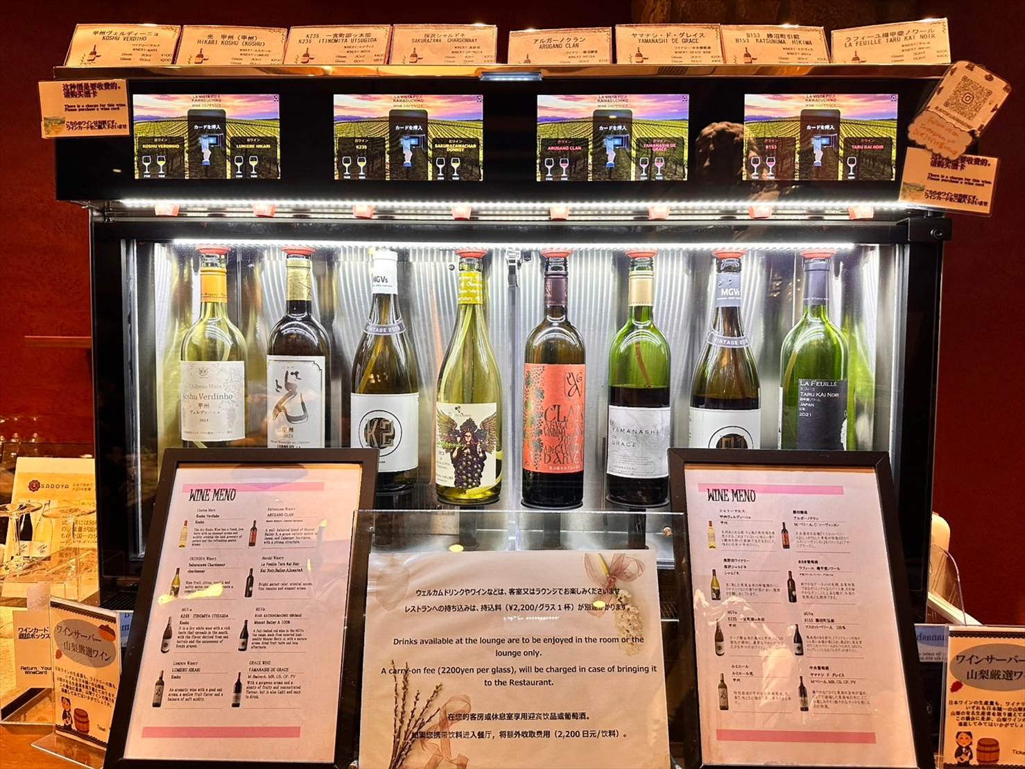 フロントでワインカードを購入し、カードを用いていただく形です。