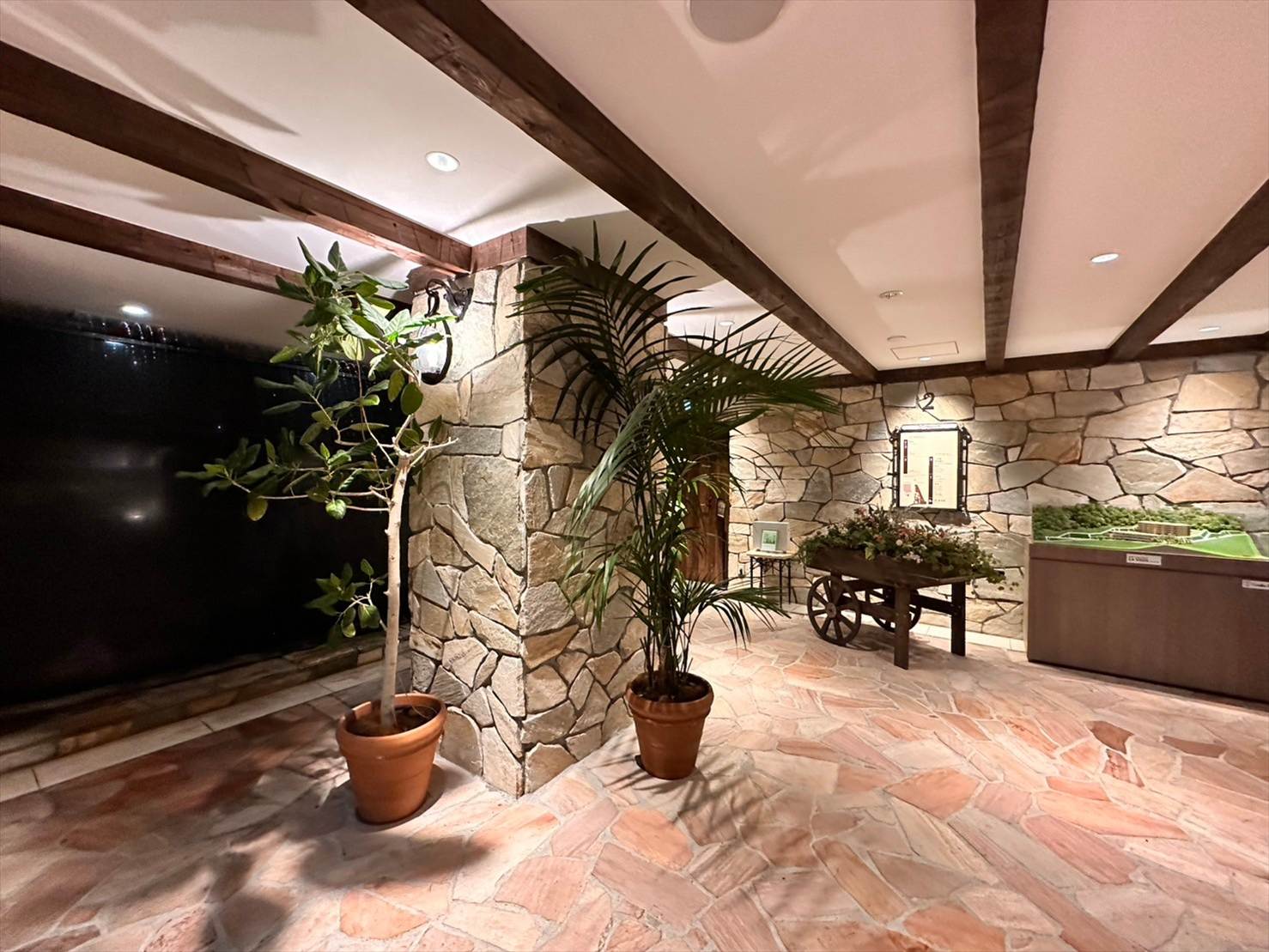 水の音と、インテリアと、植物とのお陰で、ただのエレベーターホールがとってもおしゃれな空間に変貌していました。凄い。