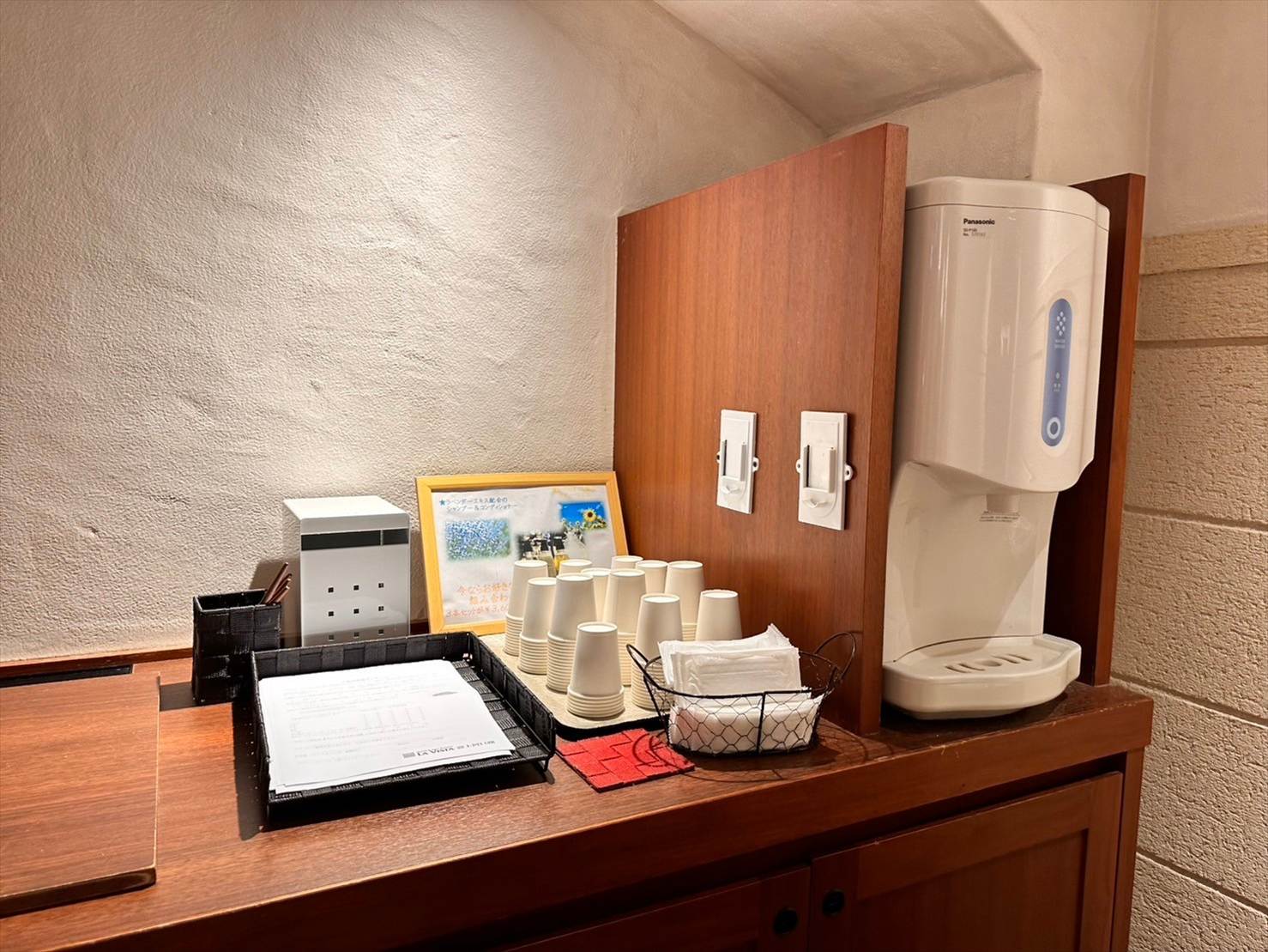 湯上がりエリアにはしっかりと冷水機が用意されていました。ありがたかったあ…。