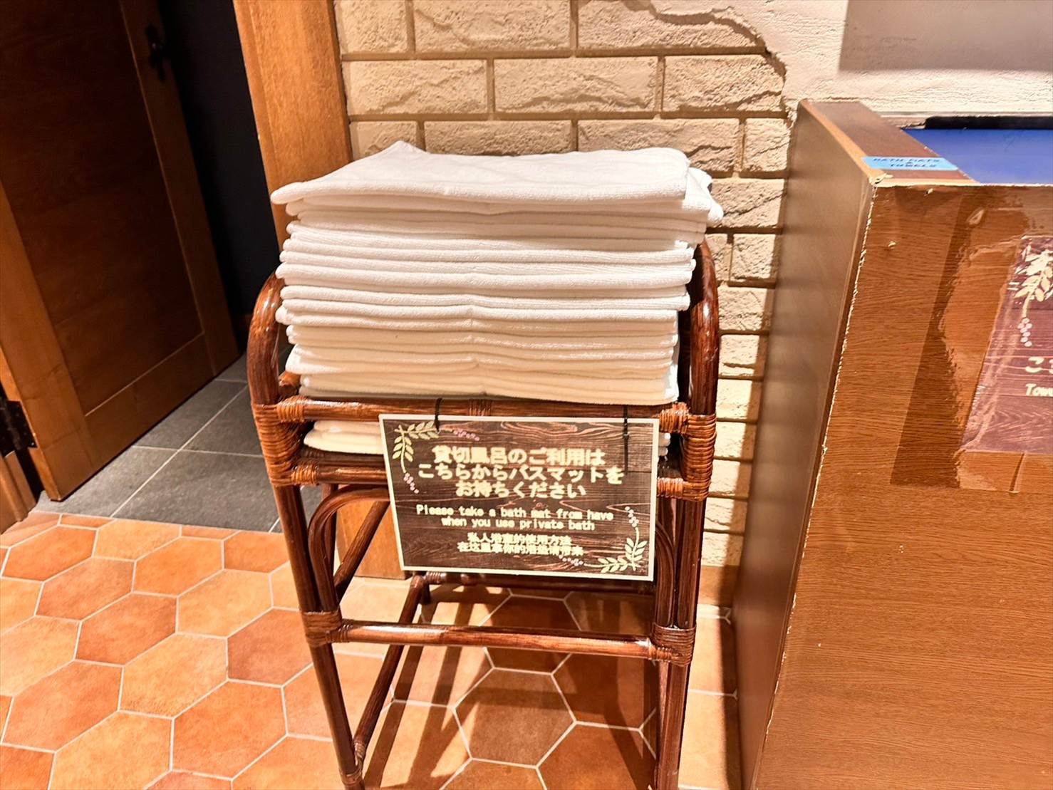▲貸切風呂用のバスマットも大量に用意されていましたよ!