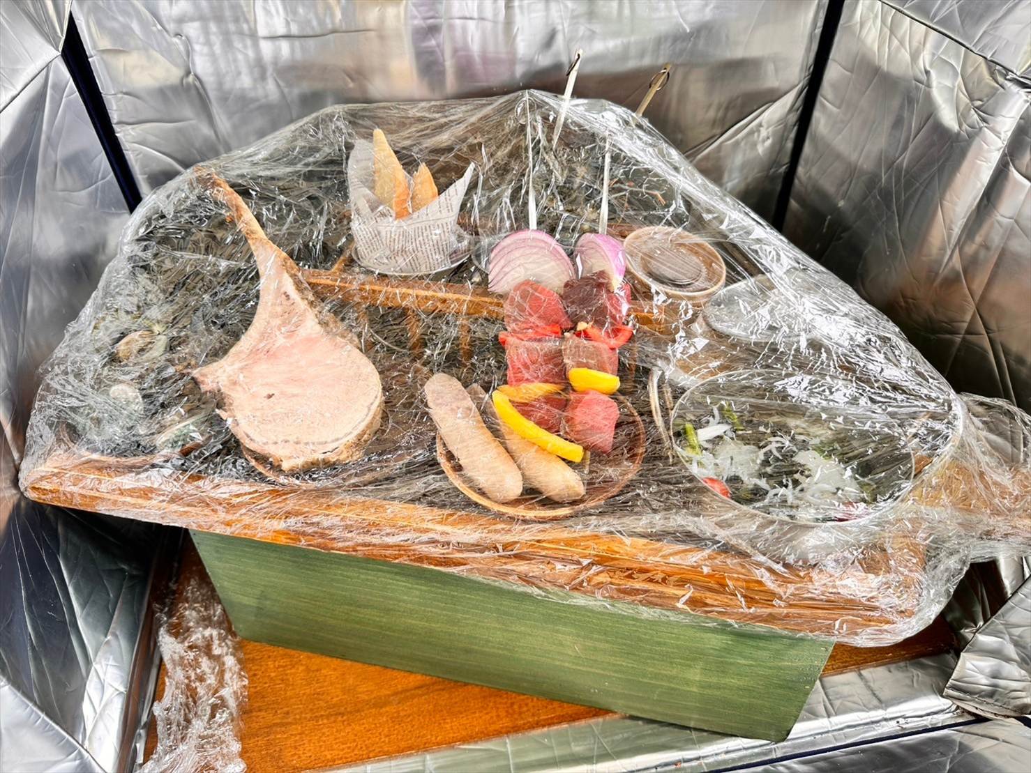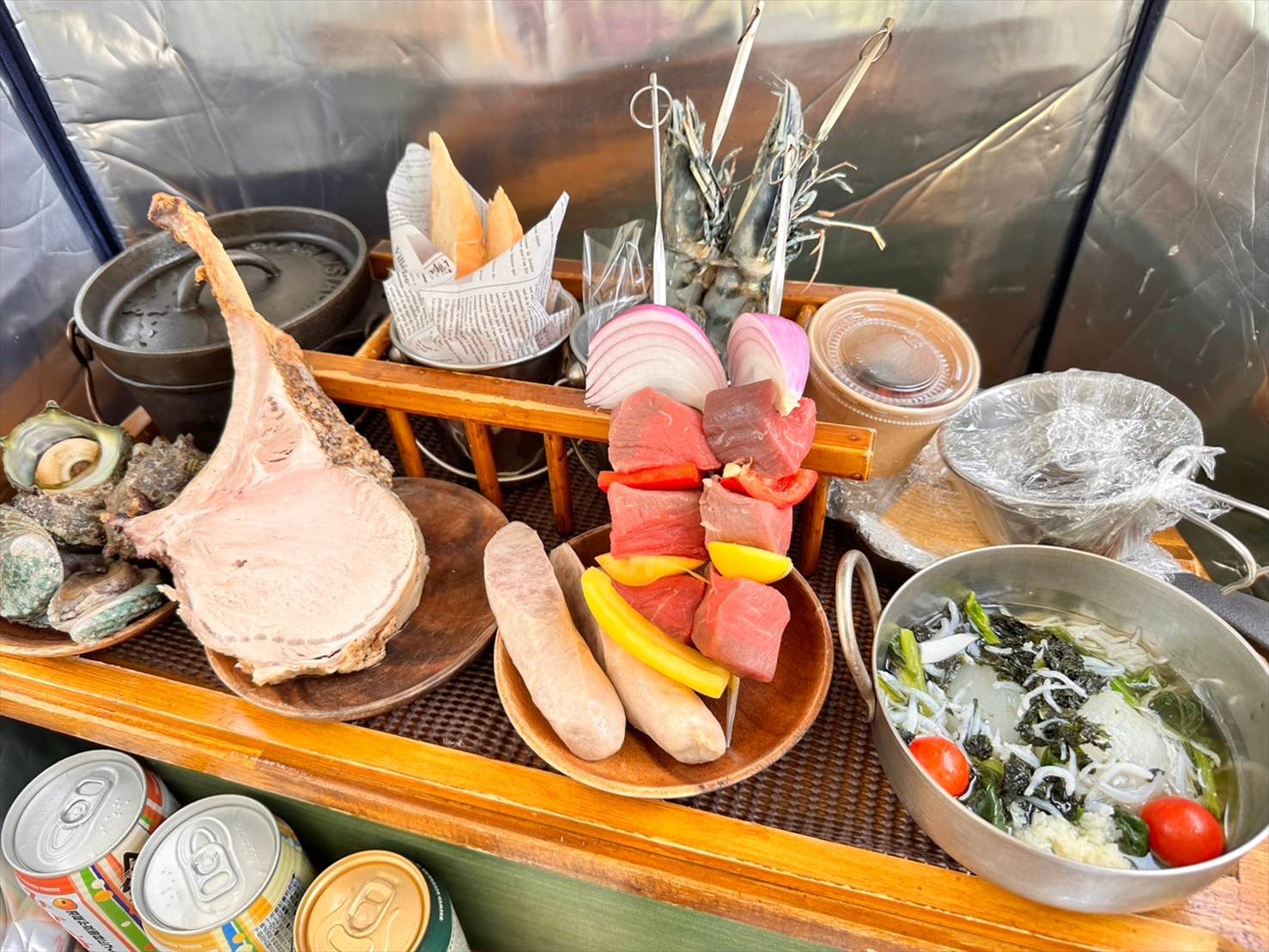 また、コンロの隣の保冷バッグには食材が入っているとの説明がありました。