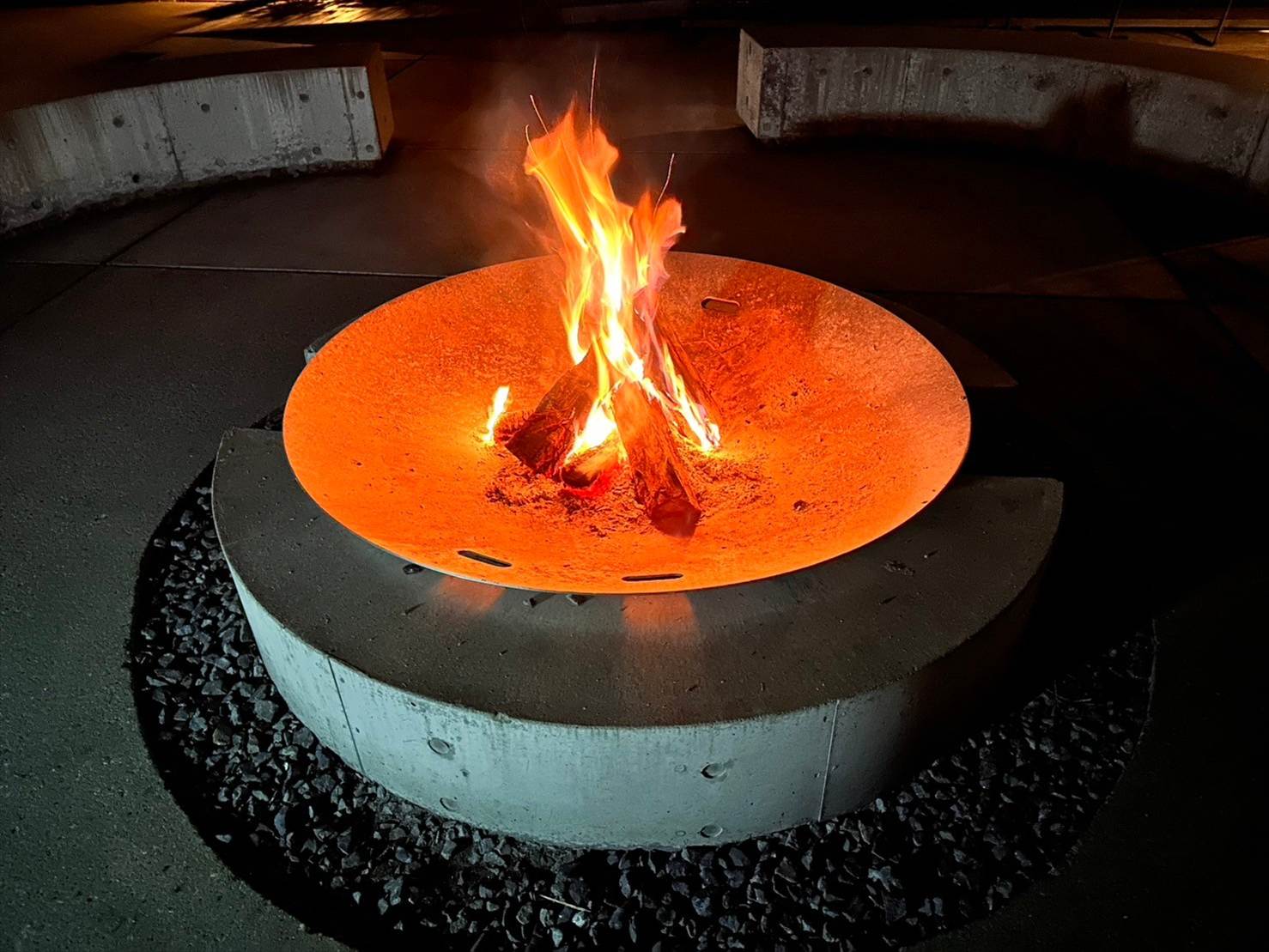 ▲ショップ近くの焚き火を見て、美味しかったなあ、楽しかったなあ…と思いながらホテルへの帰路につきます。