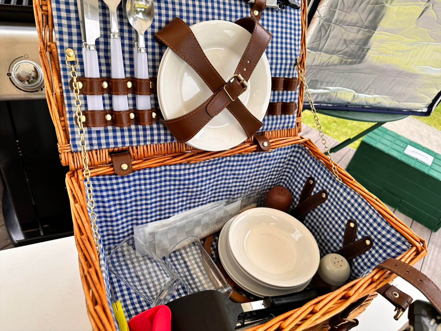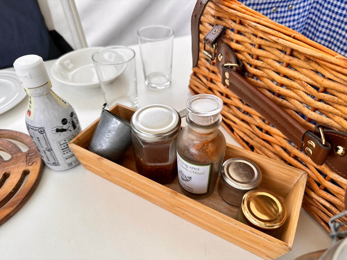 ▲テーブルの上のかごを開いてみたら、お皿やカトラリー類が用意されていました。