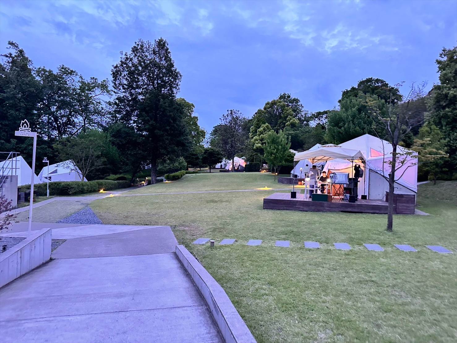▲日が高いうちの風景も素敵ですが、少し日が落ちてきたら各テントのあたりにぽつぽつと光が灯って、これまたいい雰囲気に…!