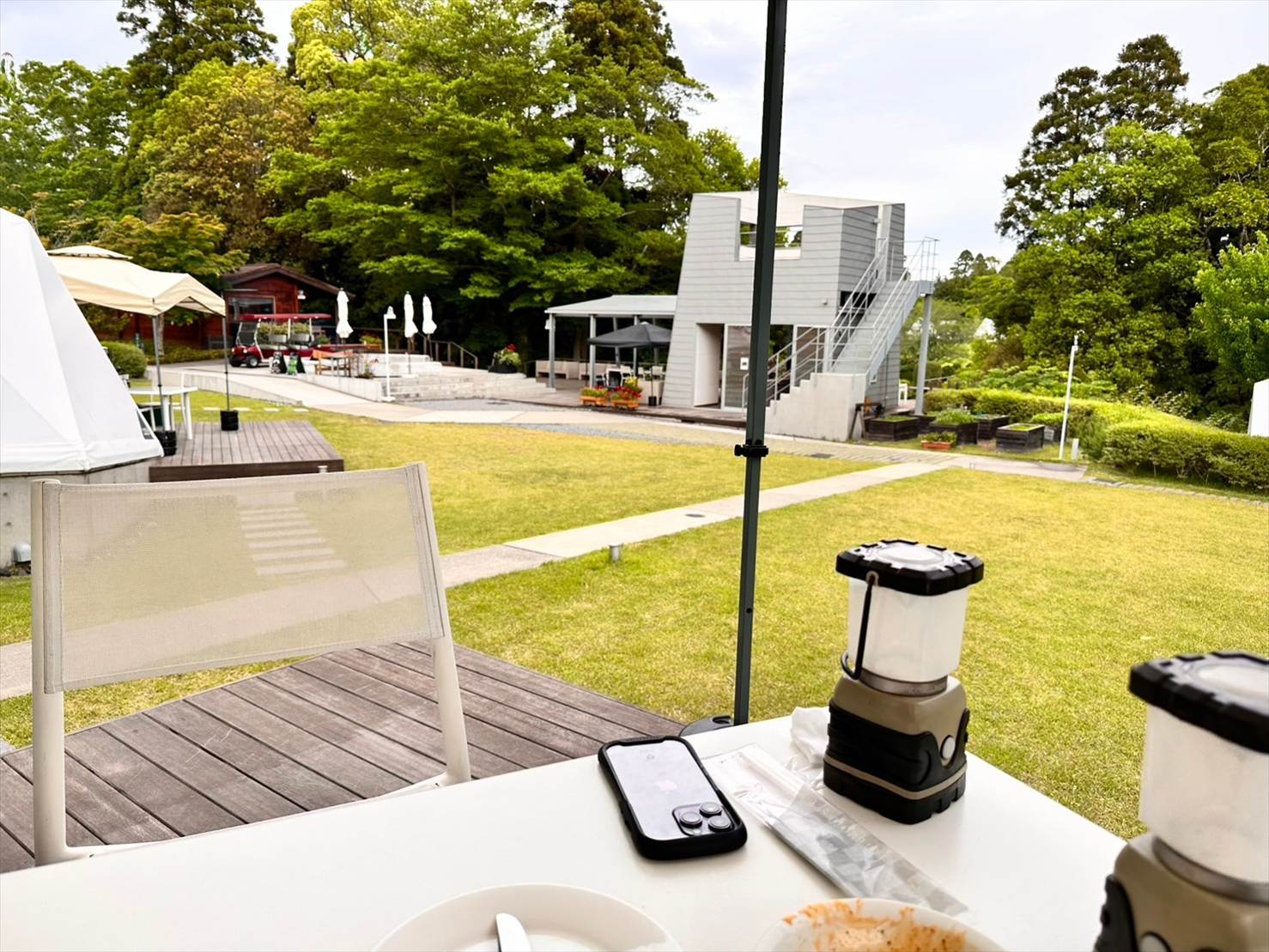 そのため、ディナー専用にグランピングテントのテラスをお借りしてBBQする形となっていました。
