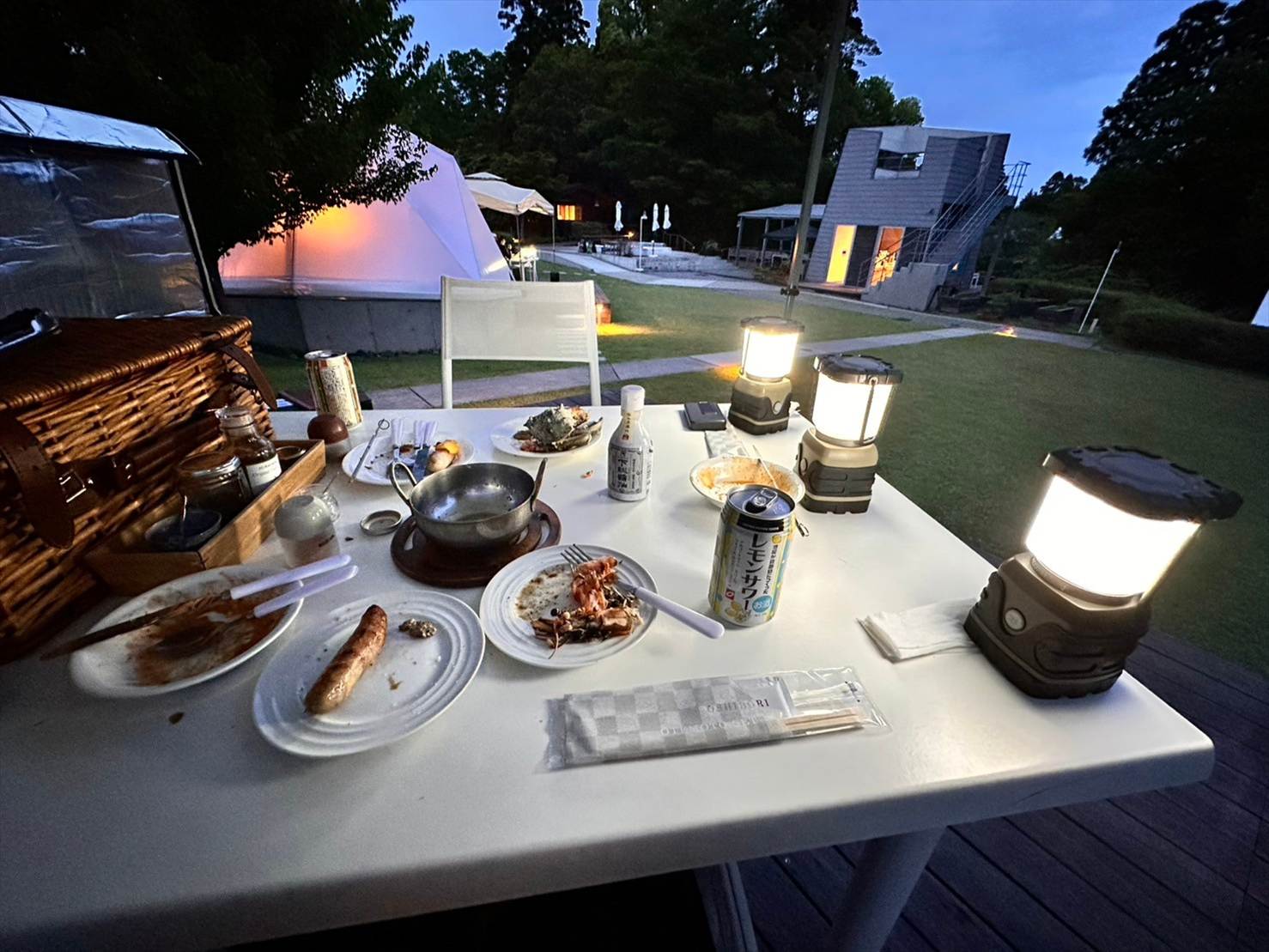 各テントやテラスに灯る明かりがこれまたいい雰囲気で素敵でしたね…。