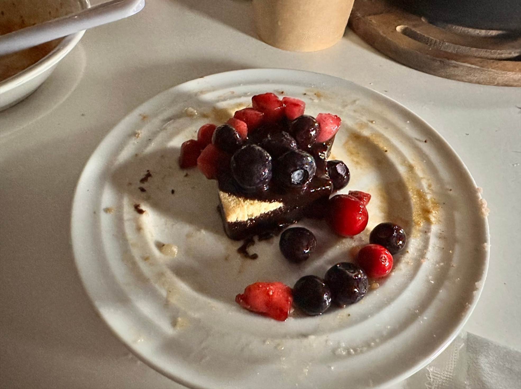 とろ~り濃厚なチョコと、甘酸っぱいベリーソースは間違いのない組み合わせ。美味しい一品でした。